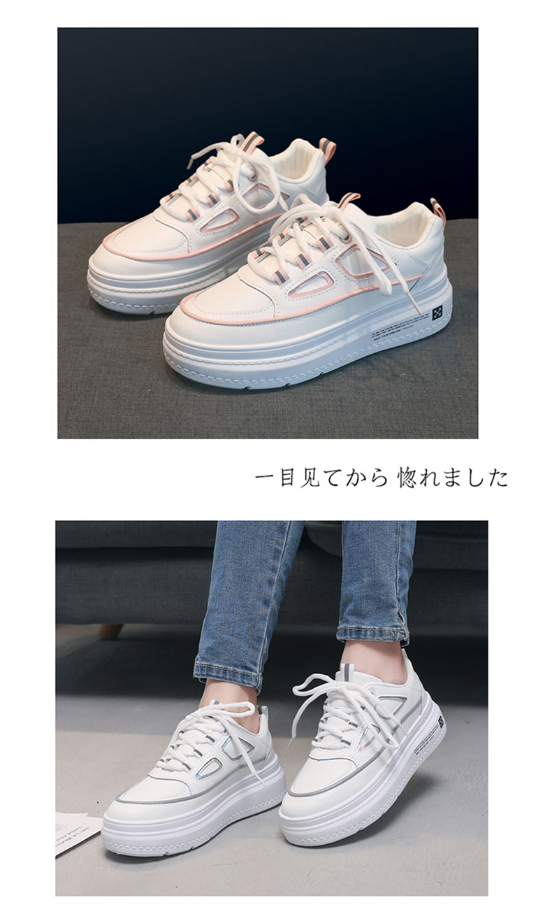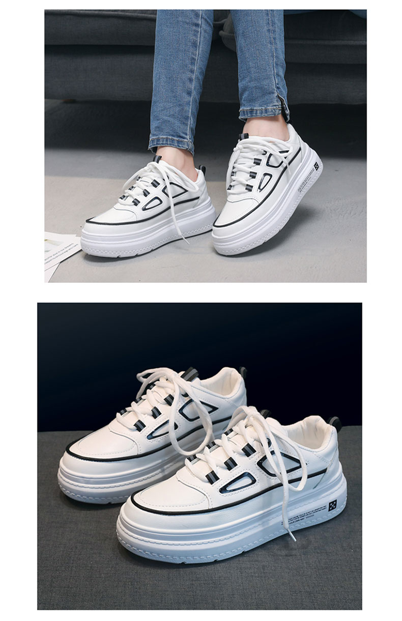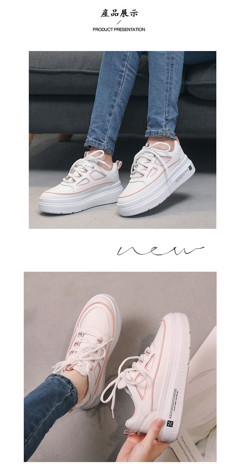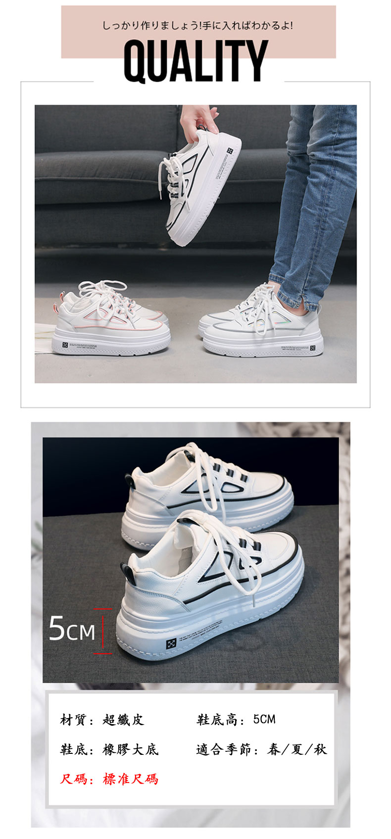【正韓清爽厚底小白鞋餅乾鞋】【跟高5cm】【超纖皮面】設計師款韓版百搭厚底增高女鞋休閒運動鞋小白鞋