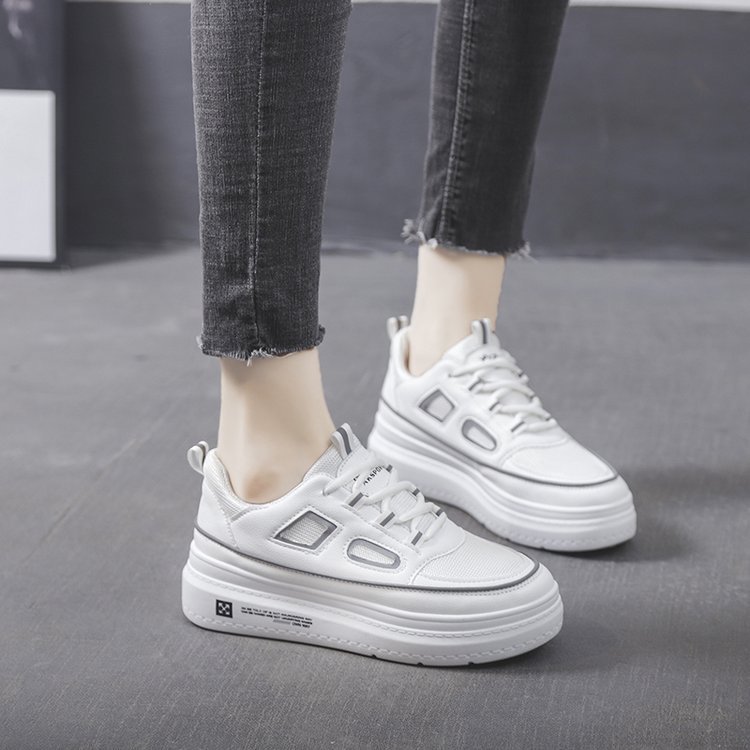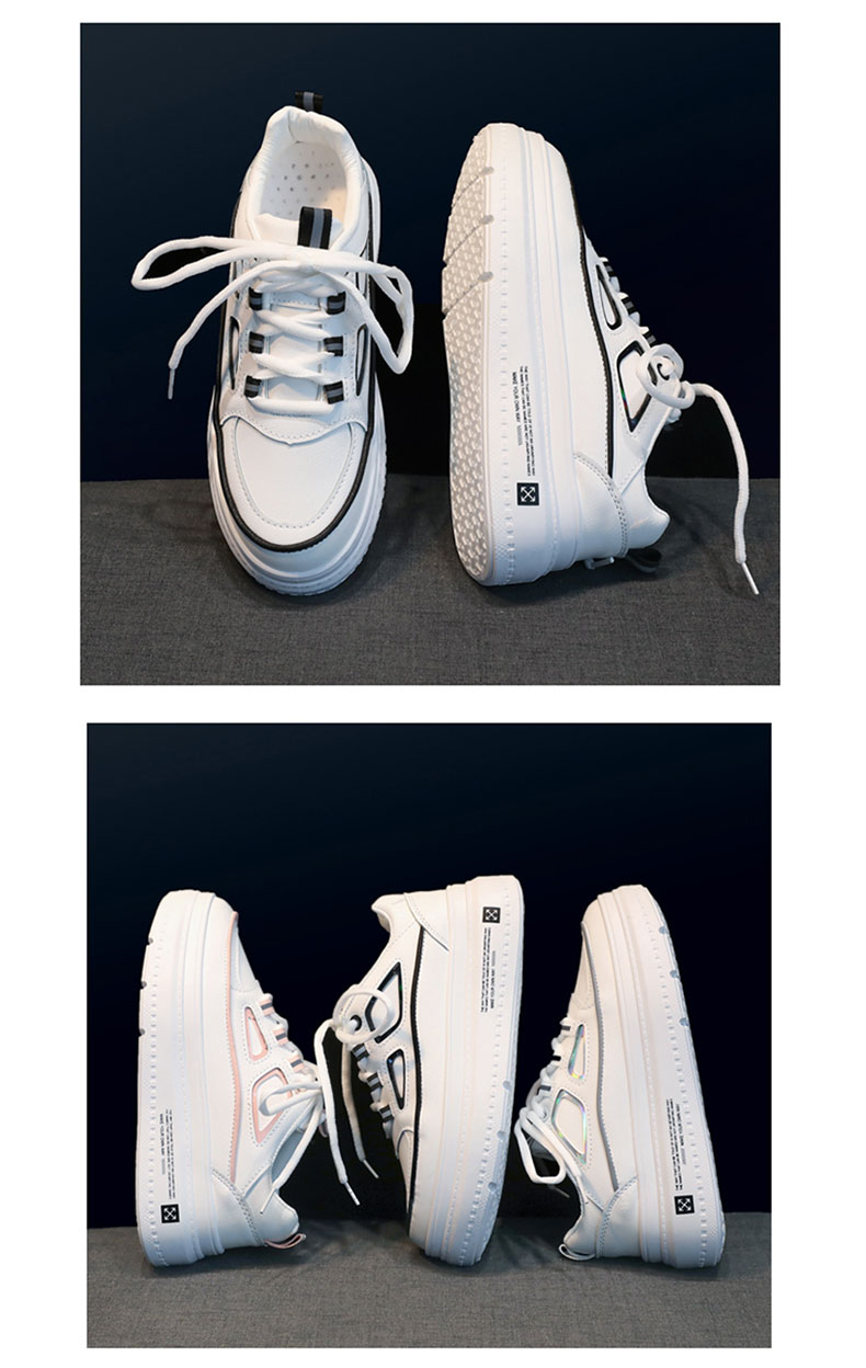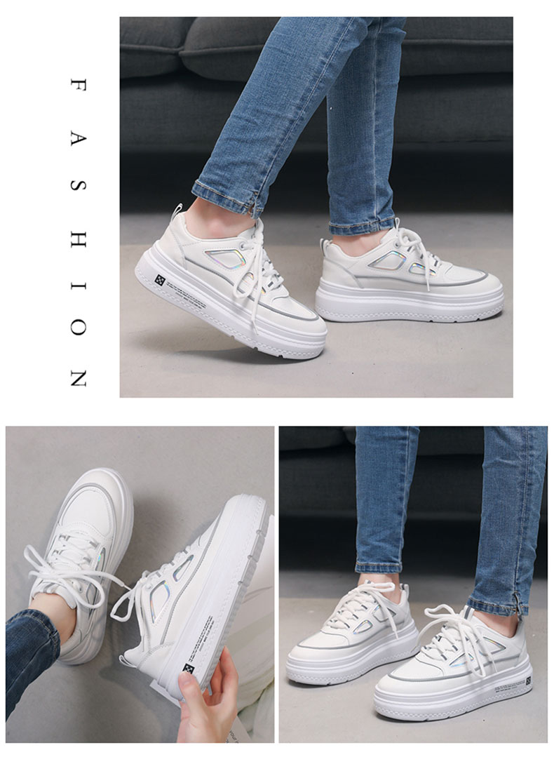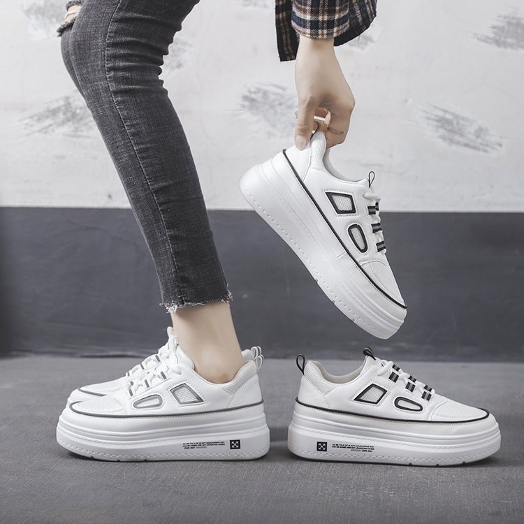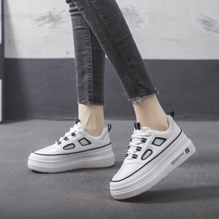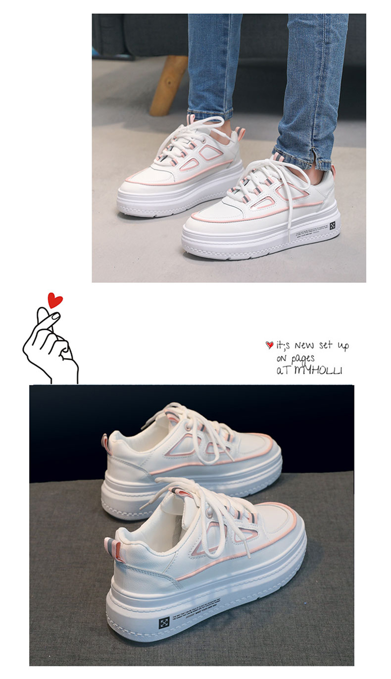 【正韓清爽厚底小白鞋餅乾鞋】【跟高5cm】【超纖皮面】設計師款韓版百搭厚底增高女鞋休閒運動鞋小白鞋