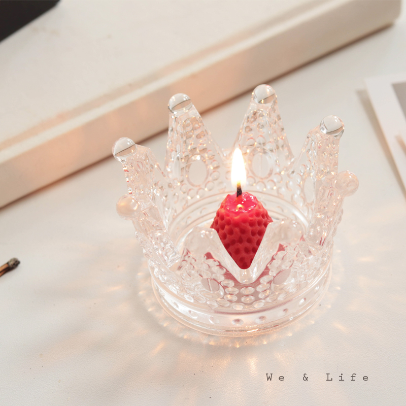 【買一贈一】【水晶皇冠小燭臺】純手工燒製歐式皇冠造型水晶玻璃小蠟燭臺