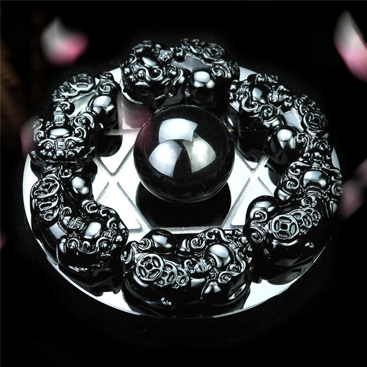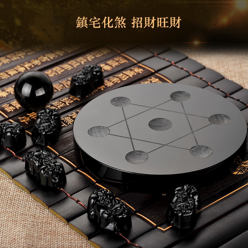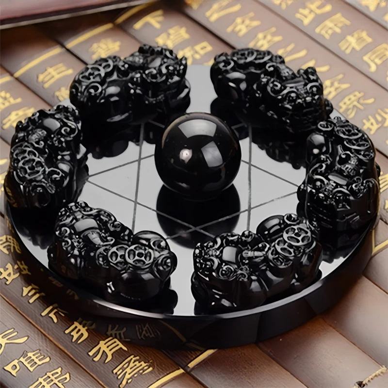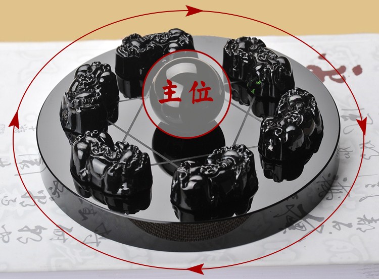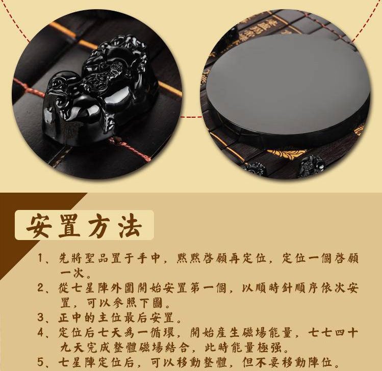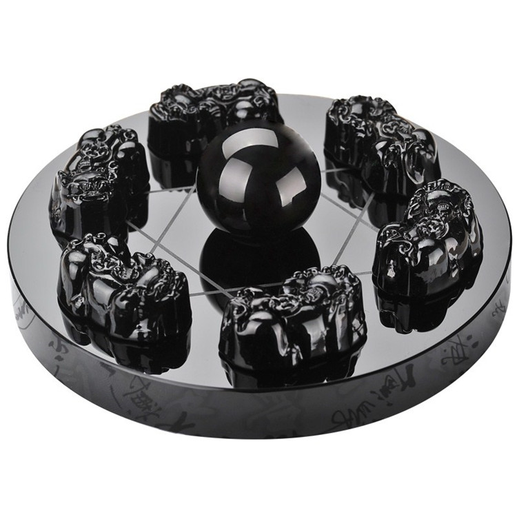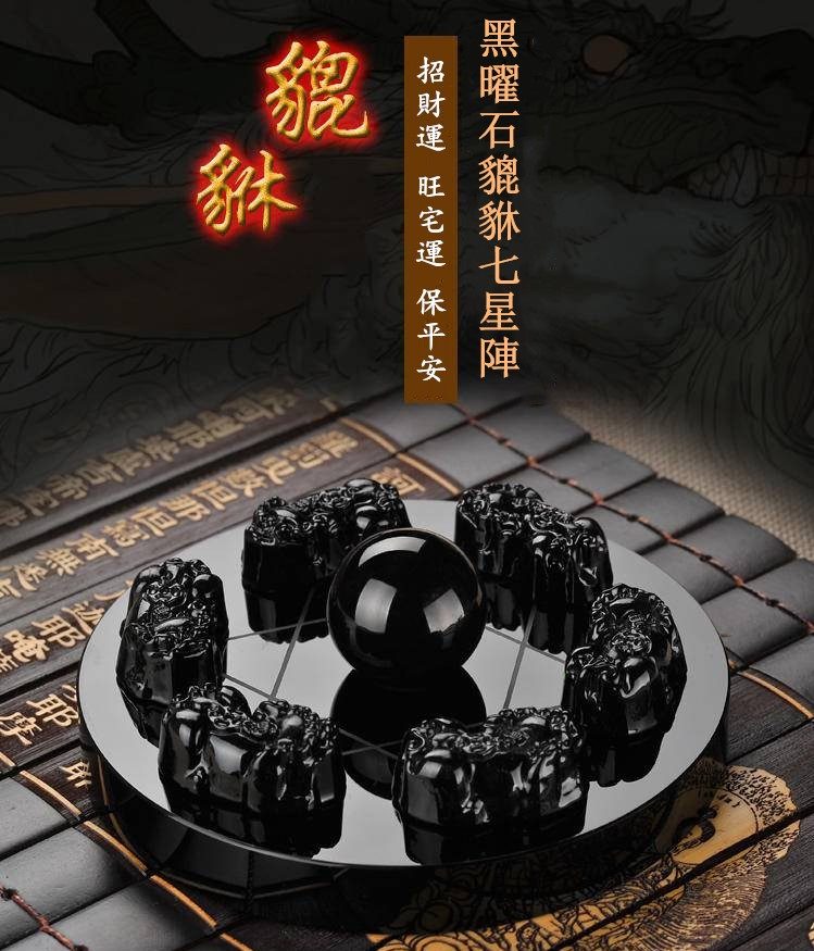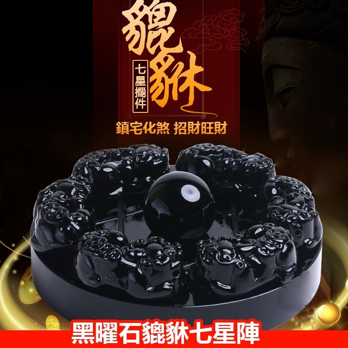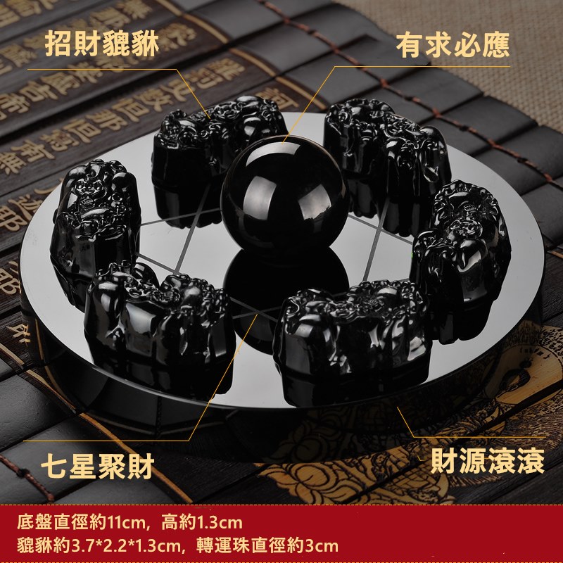 七星開運 | 財來八方 | 天然黑曜石貔貅聚財陣 | 同料黑曜石底座 | 手工立體精雕 | 鎮宅招財超強加持天然黑曜石貔貅聚財陣套組擺件