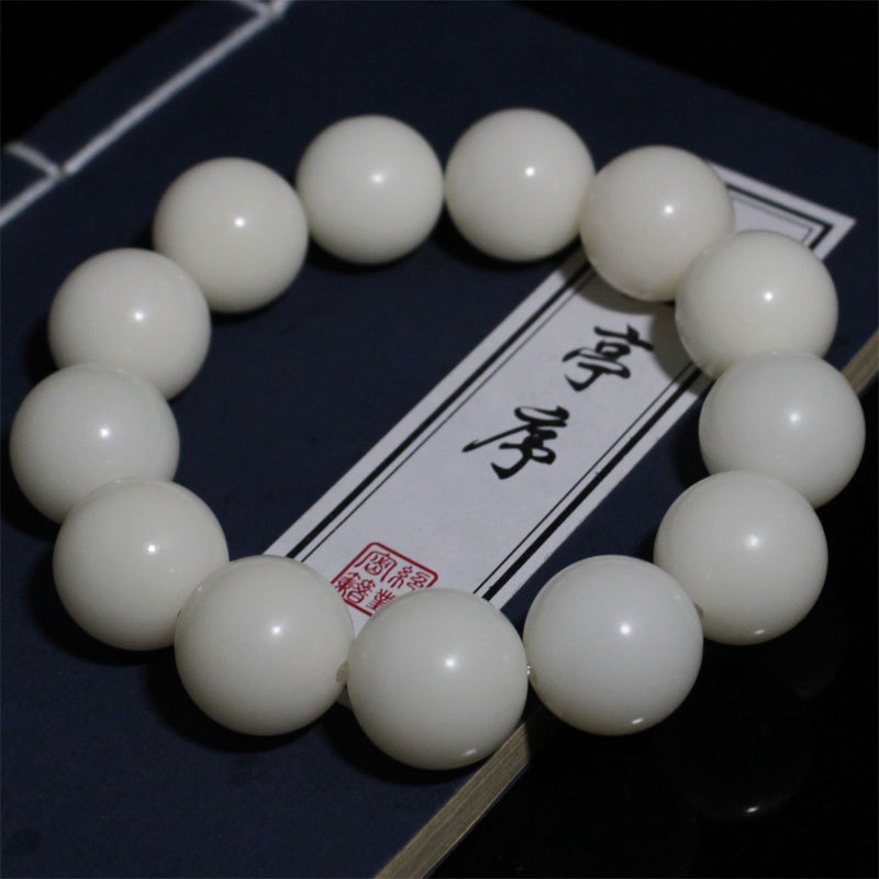 天然精品白玉菩提根高密原籽拋光菩提單圈佛珠手串 (18mm*13顆)