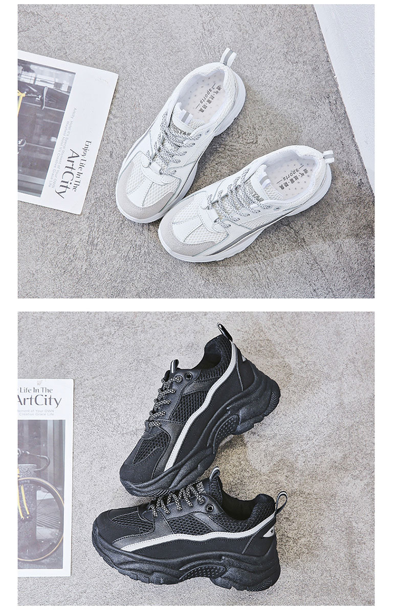 【日系清爽版型】【夜間反光帶】【5cm跟高】原創設計日系清爽顯瘦舒適透氣厚底增高顯瘦女鞋運動老爹鞋