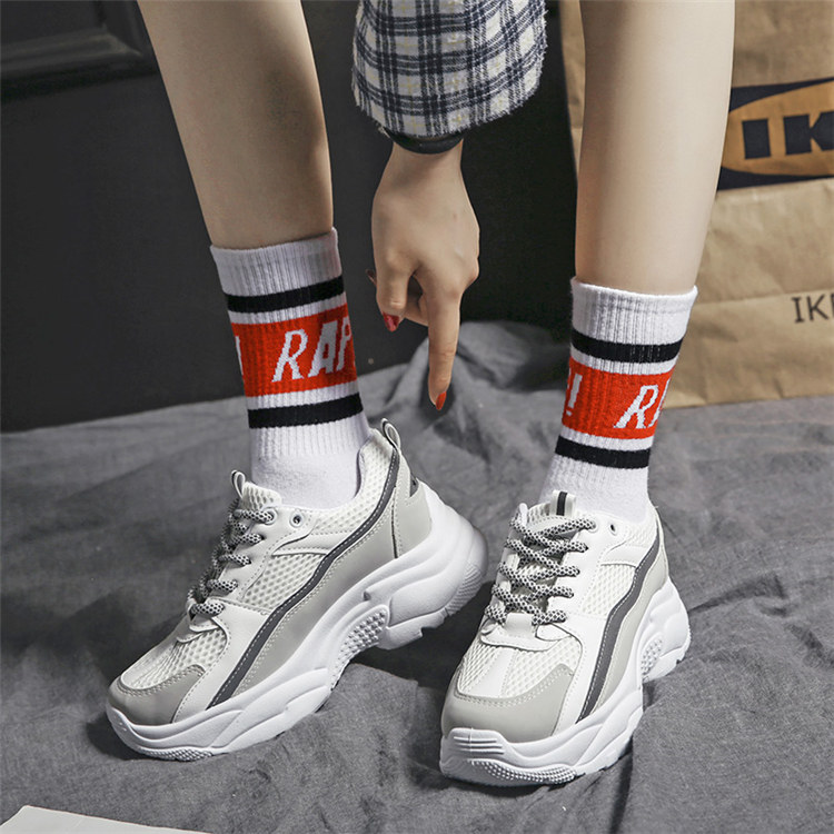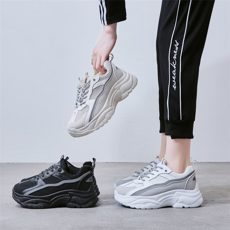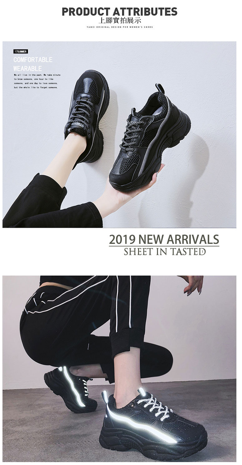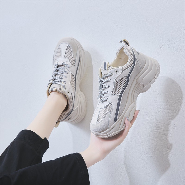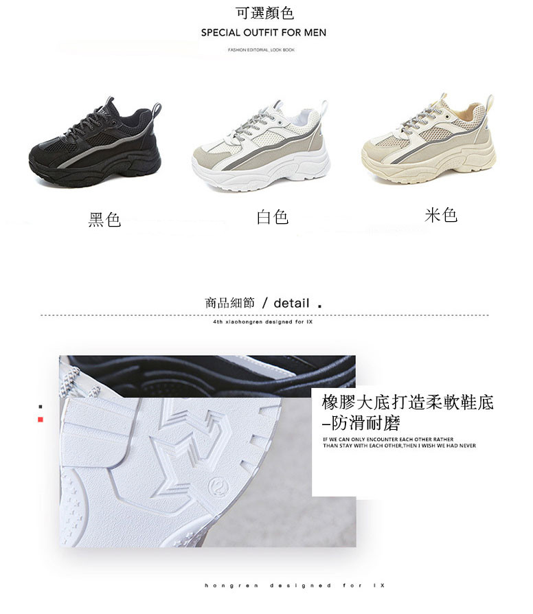 【日系清爽版型】【夜間反光帶】【5cm跟高】原創設計日系清爽顯瘦舒適透氣厚底增高顯瘦女鞋運動老爹鞋