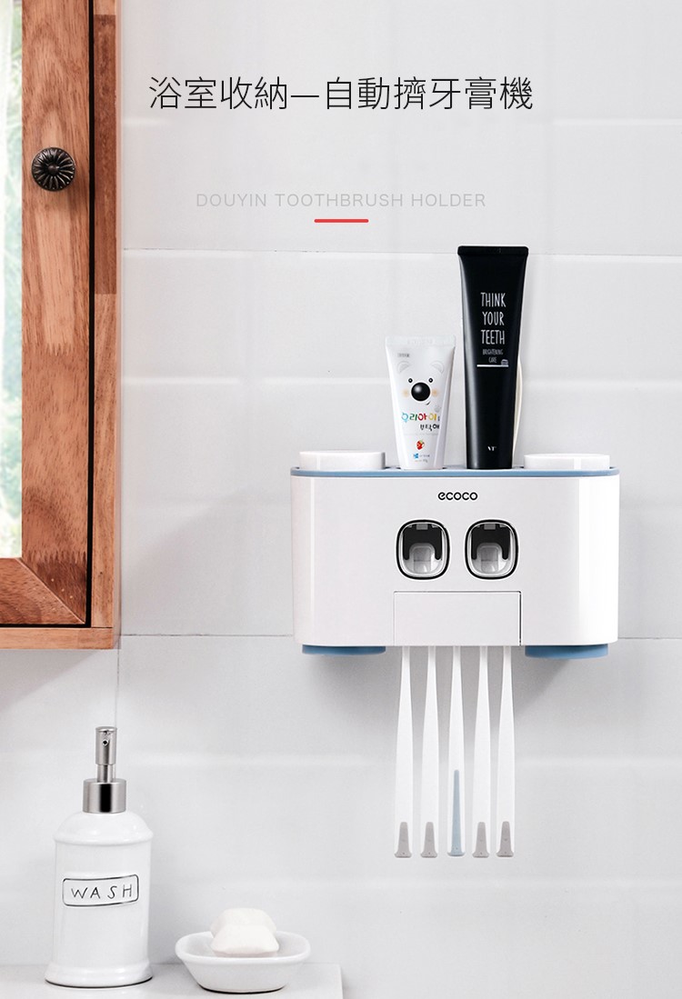 【自動擠牙膏機】【浴室收納】日式家庭浴室收納免打孔自動擠牙膏機
