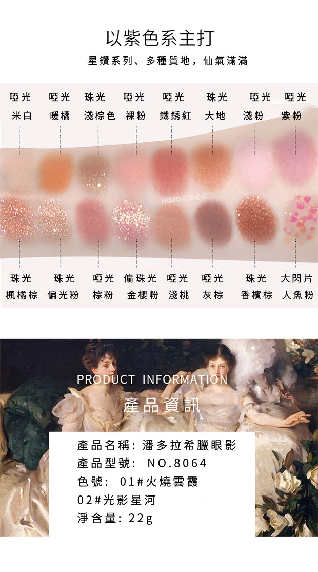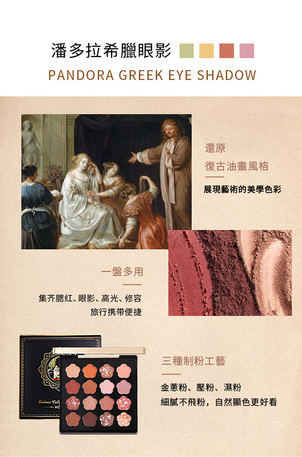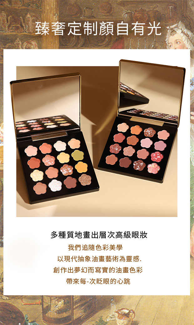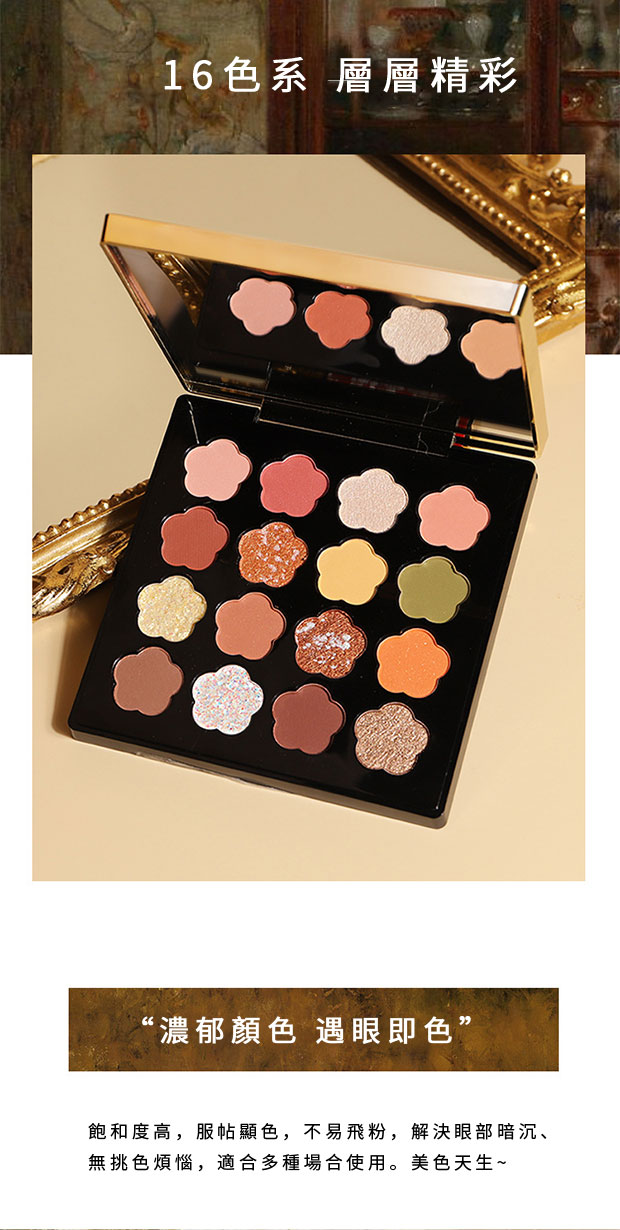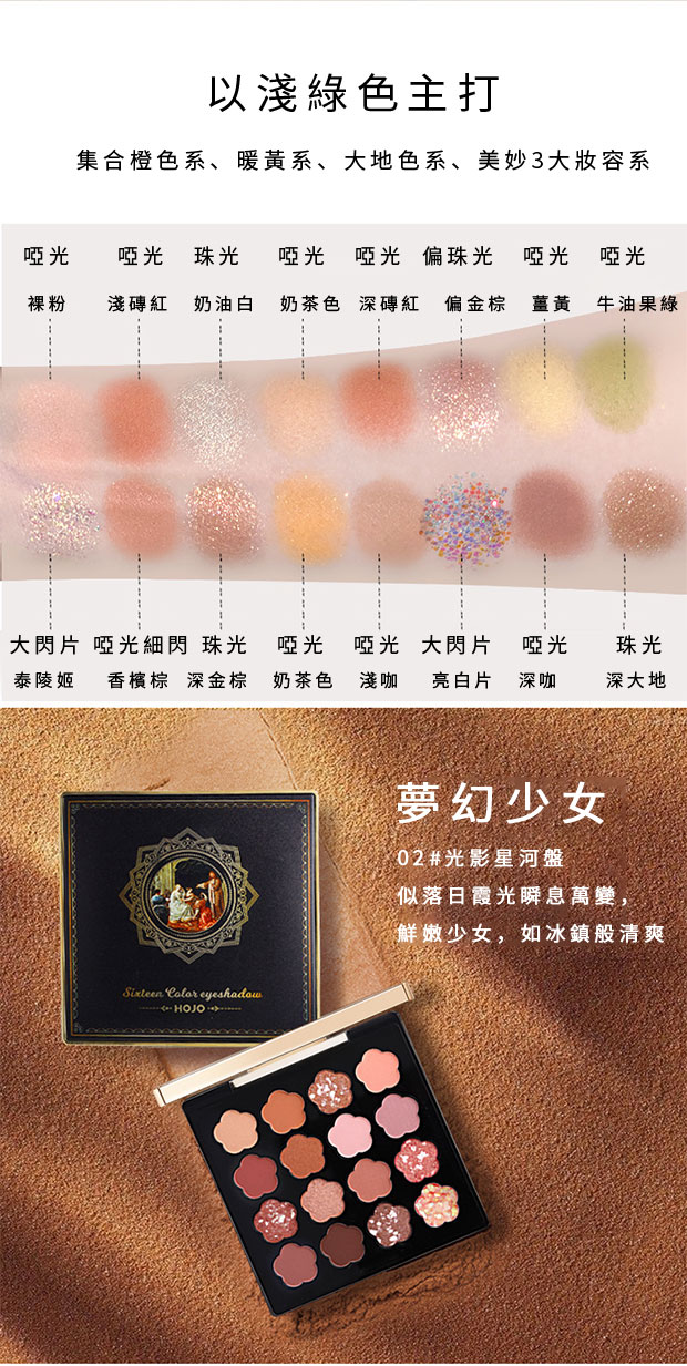 【光影星河16色眼影】【多層次高級感】希臘風格油畫係細膩不飛粉綿糯啞光細閃16色眼影盤高級眼妝