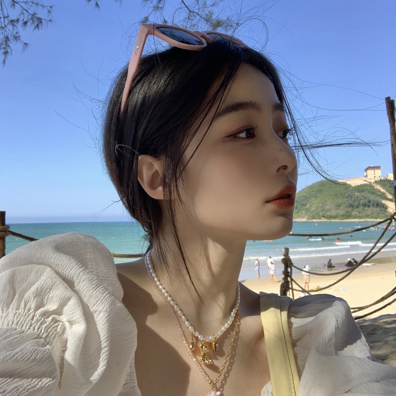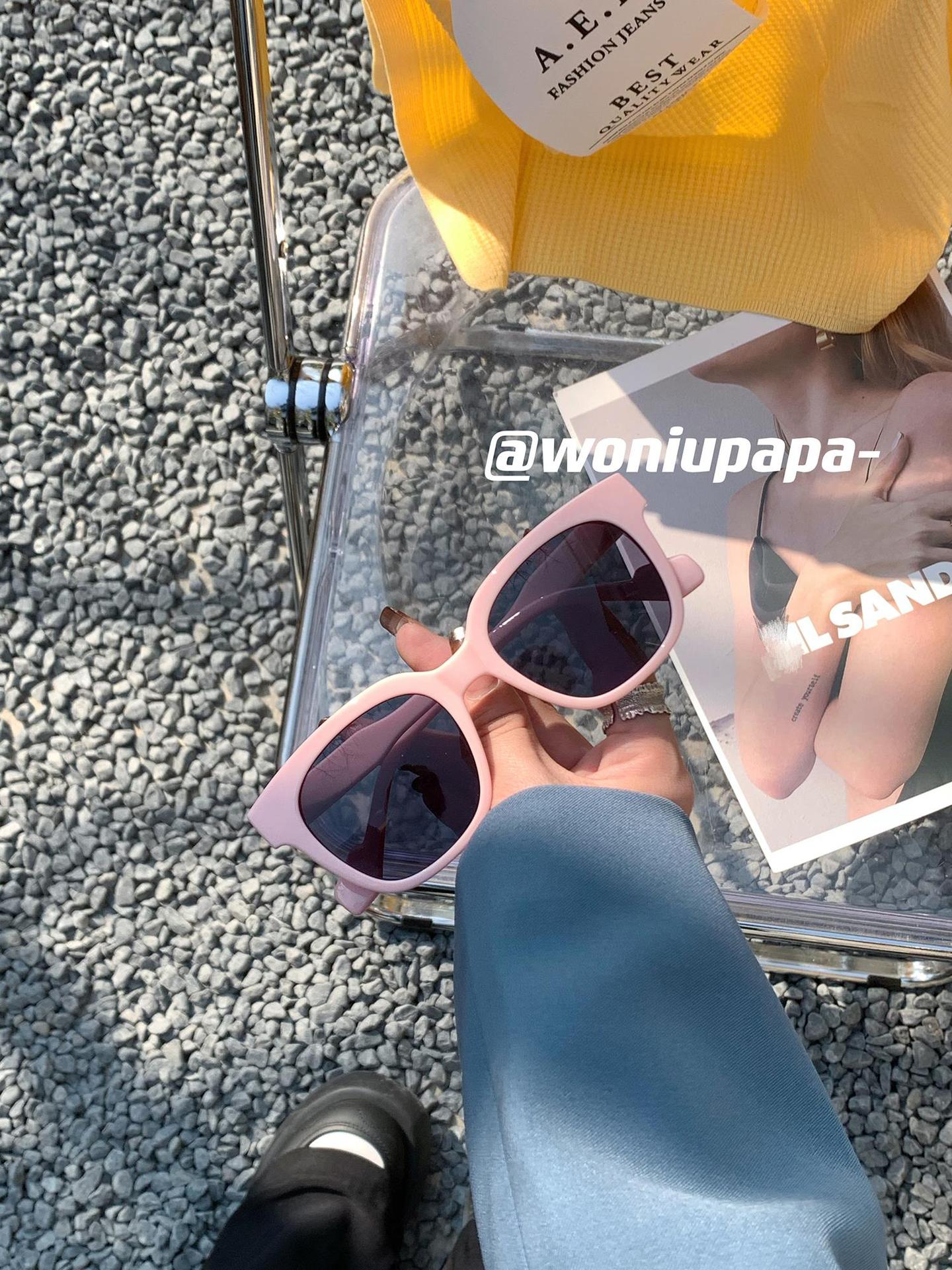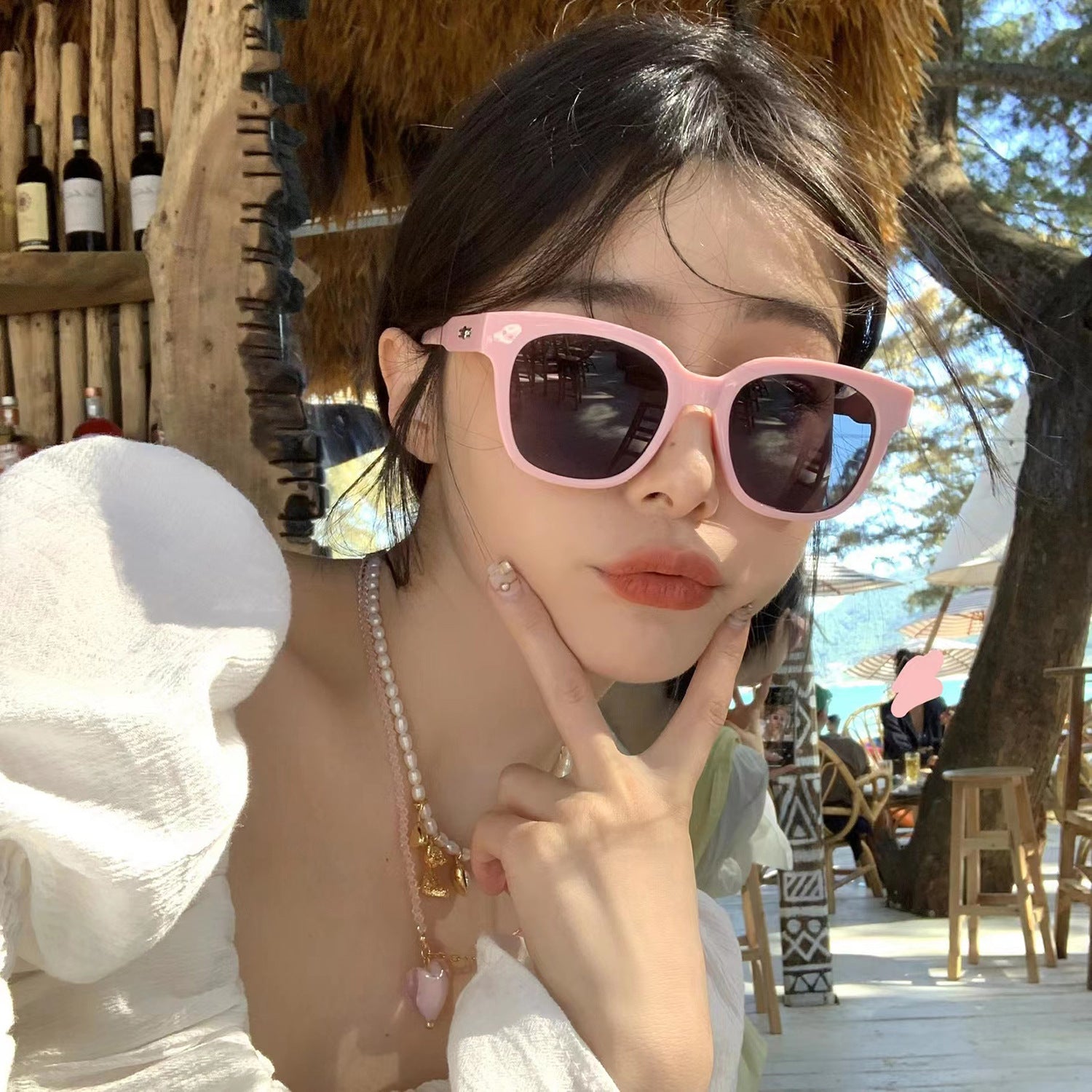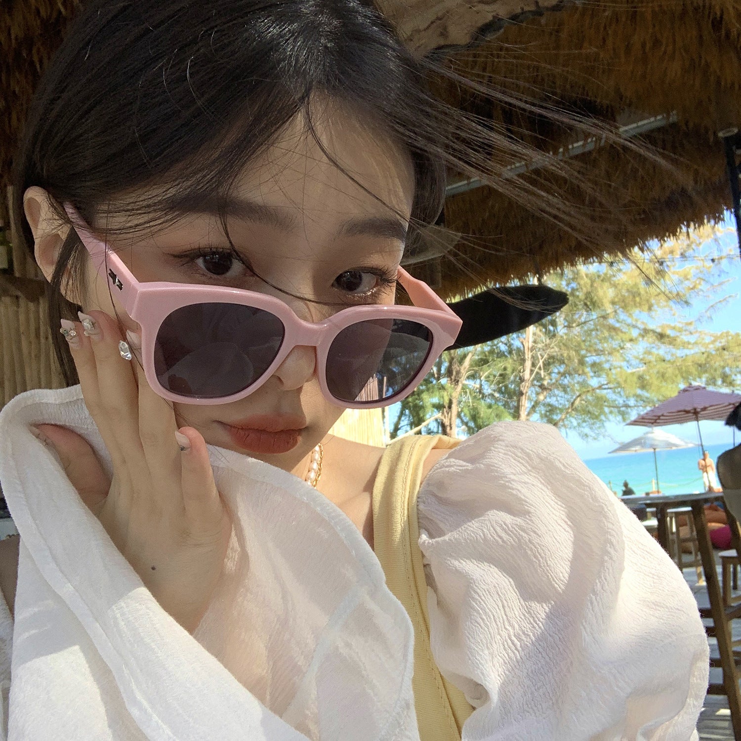 UV400網紅櫻花粉少女穿搭時尚墨鏡女擺拍高級感IG潮框眼鏡太陽眼鏡
