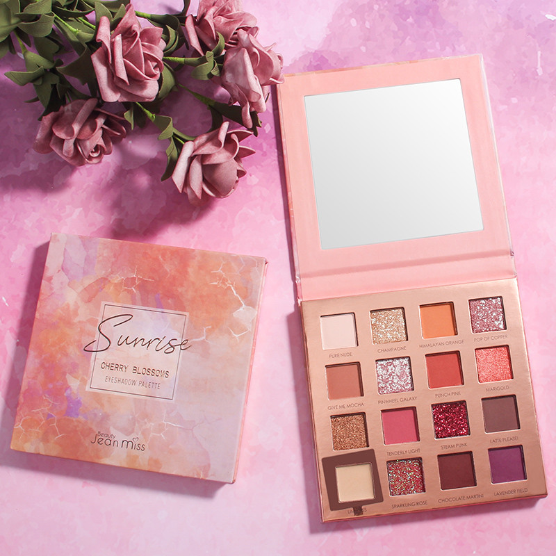 【粉色晨曦櫻花16色眼影】【自然易上手】珠光啞光多質地超日系粉色晨曦櫻花妝容16色眼影盤帶鏡子眼妝