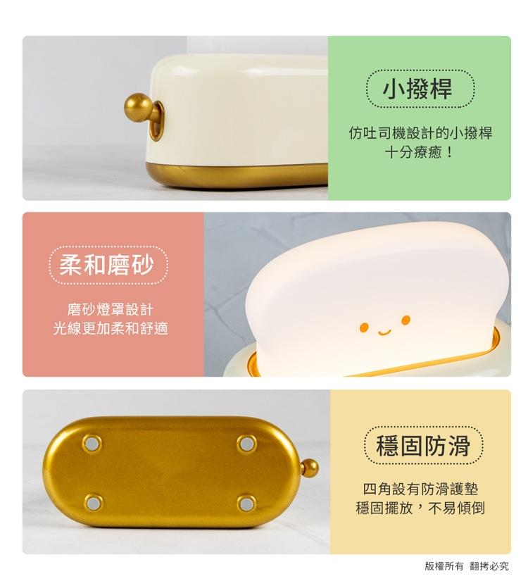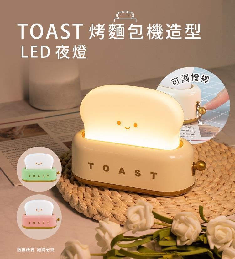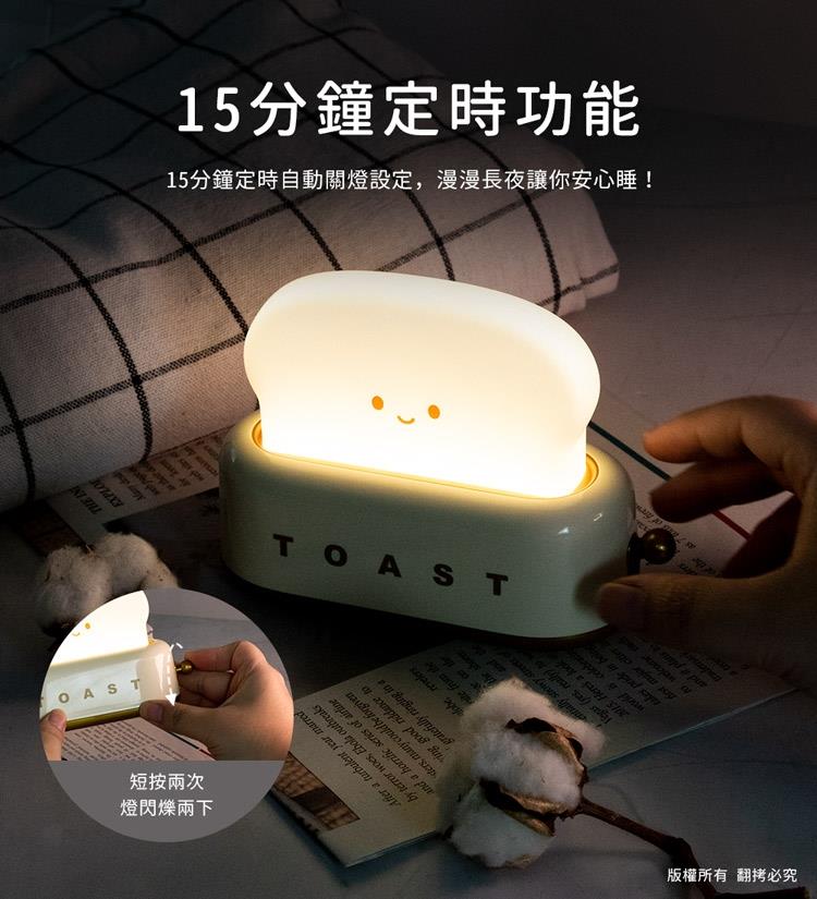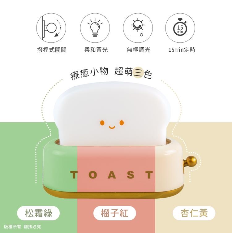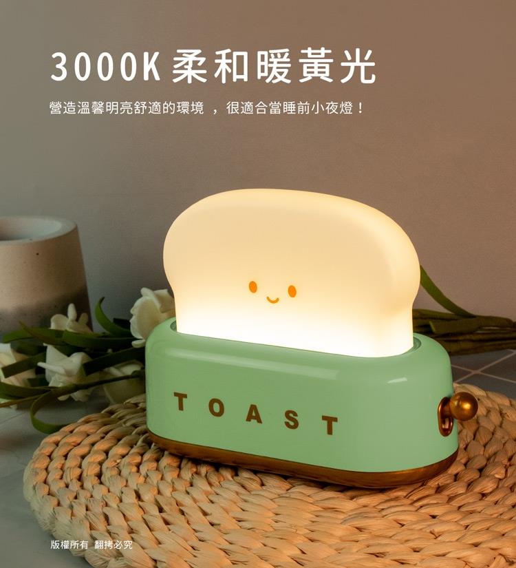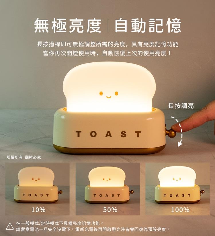 TOAST吐司機情感小夜燈 | 無極調光自動記憶 | 15分鐘定時 | 最長120H續航 | 溫馨可愛暖白光烤麵包機造型LED伴睡小夜燈