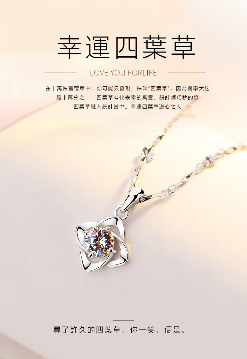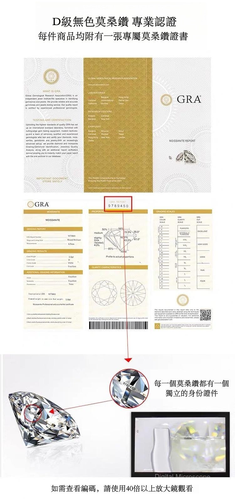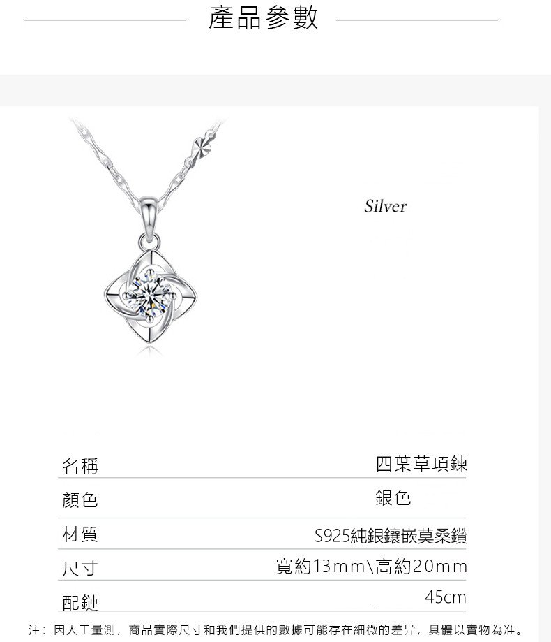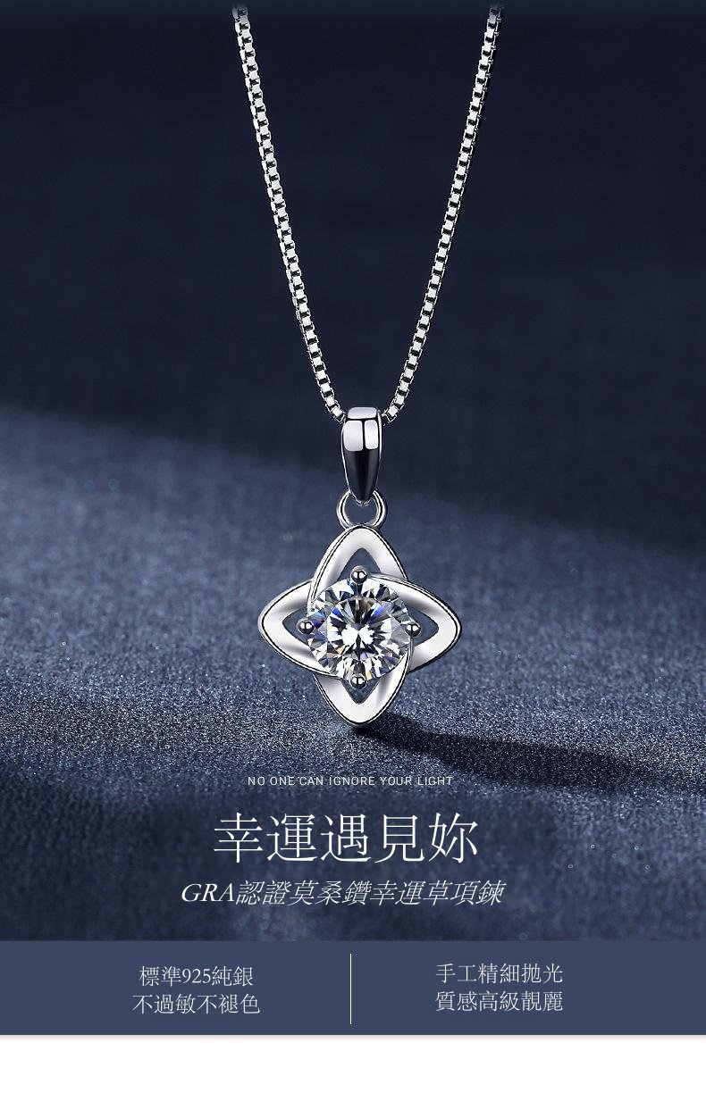 採用GRA認證一克拉莫桑石 加倍閃耀真火彩 附有獨一無二的GRA認證證書 搭配S925純銀,精緻打磨,手工鑲嵌 閃亮奪目、美麗動人 四葉幸運草設計,寓意好運伴隨,幸福快樂