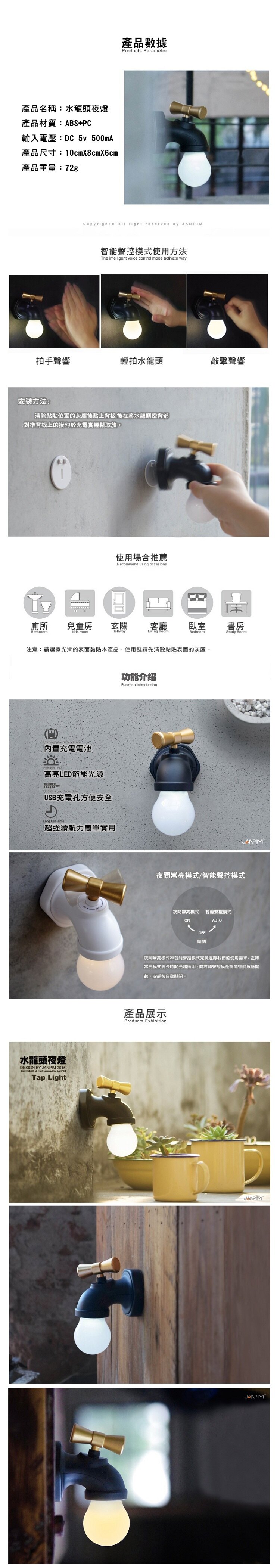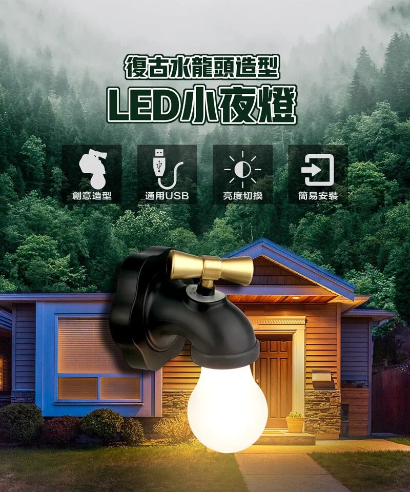 【水龍頭美型LED小夜燈】【智慧聲控觸摸】【USB充電長續航】2022升級版工業風美型復古水龍頭造型智慧聲控觸摸LED小夜燈