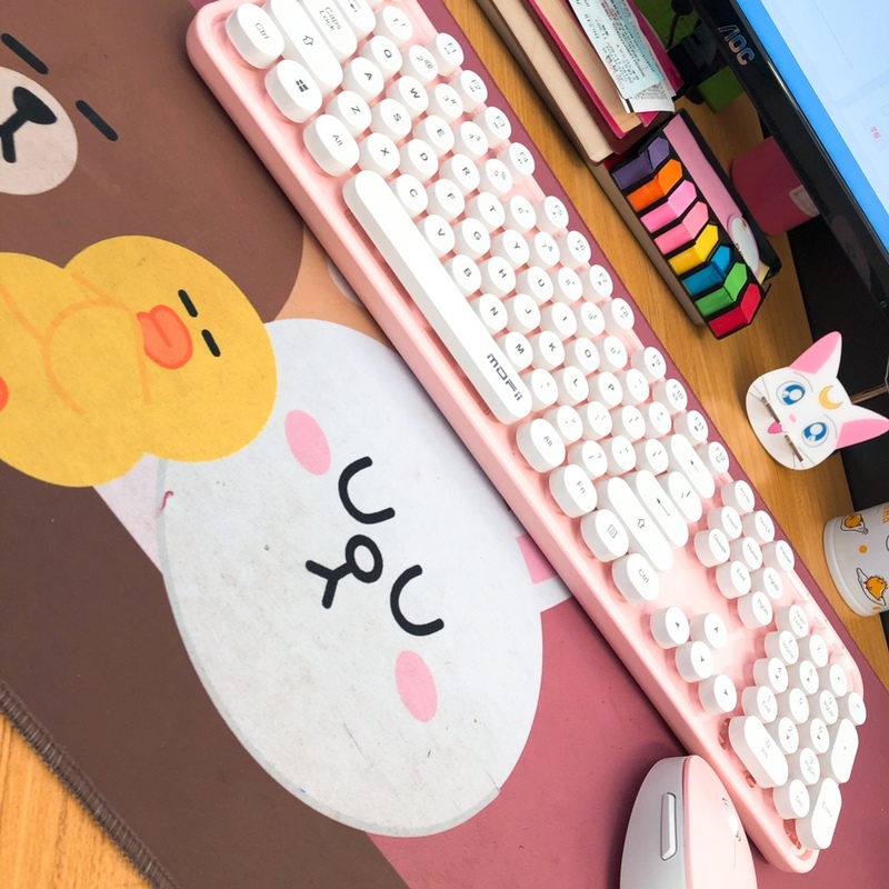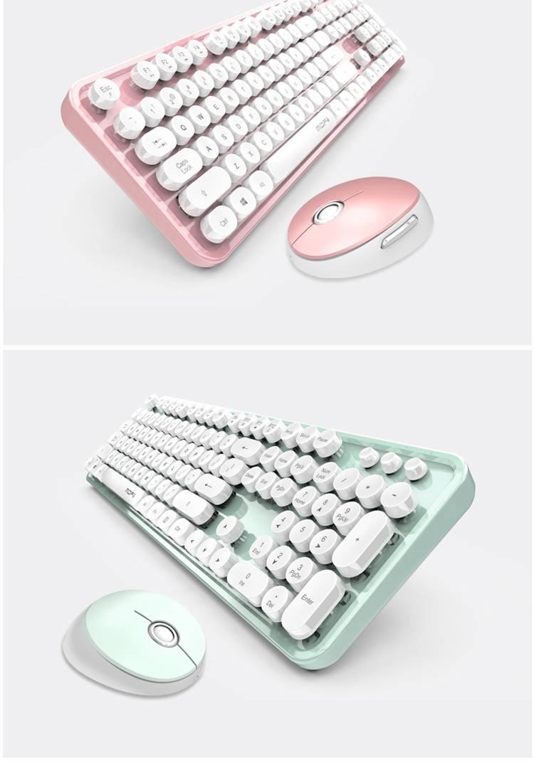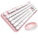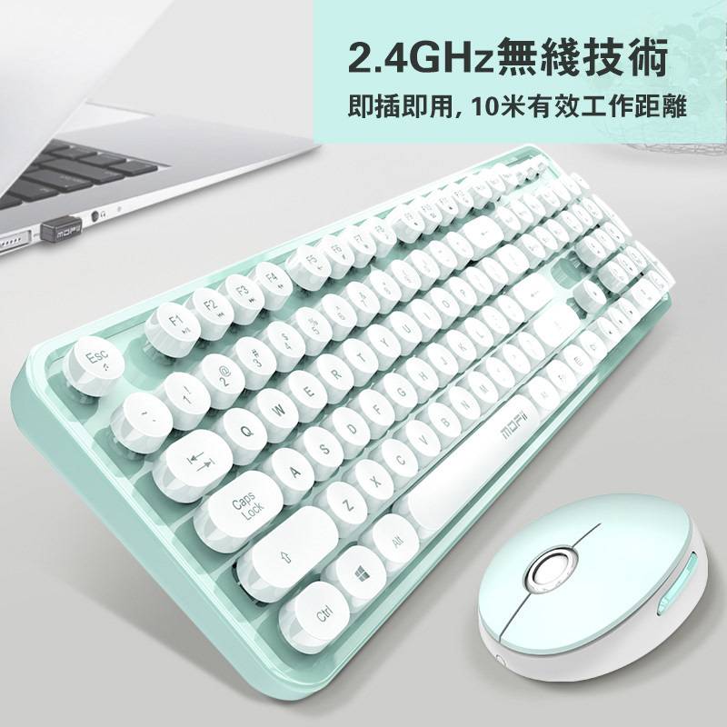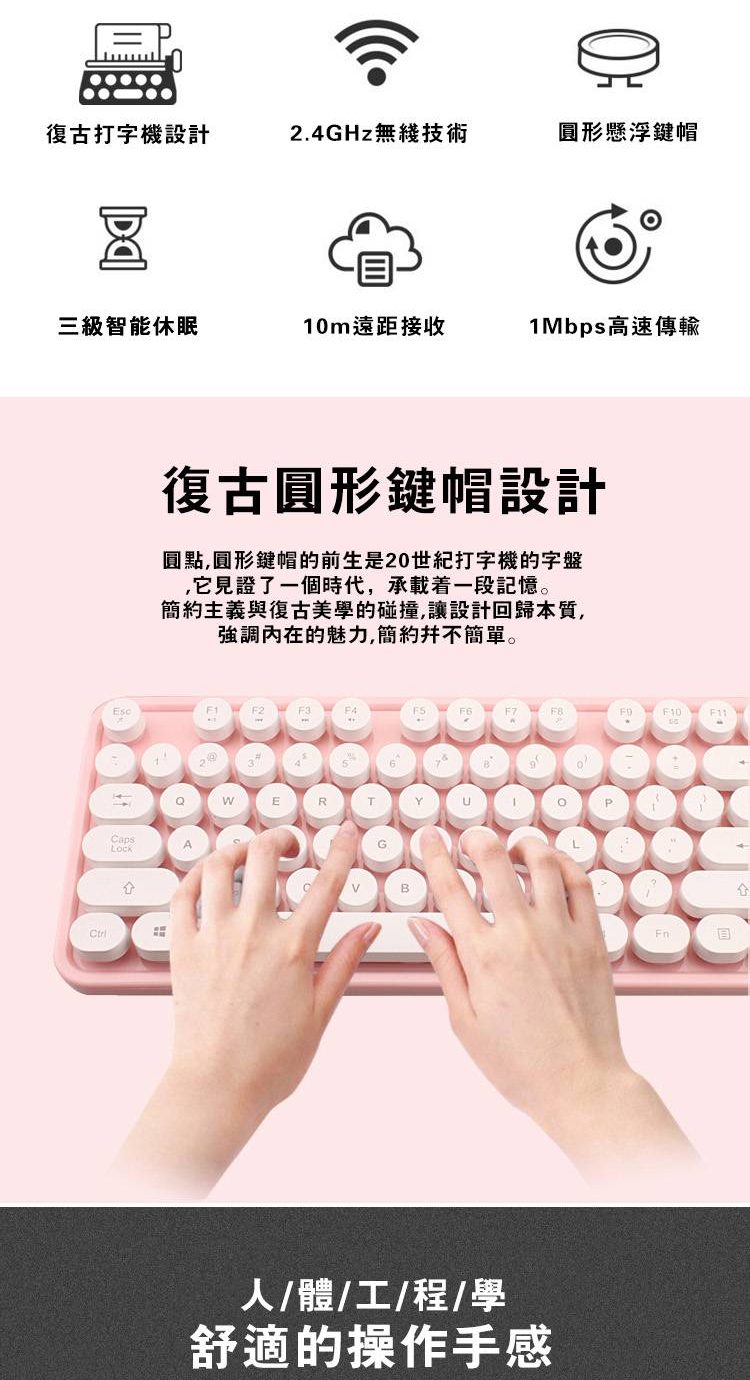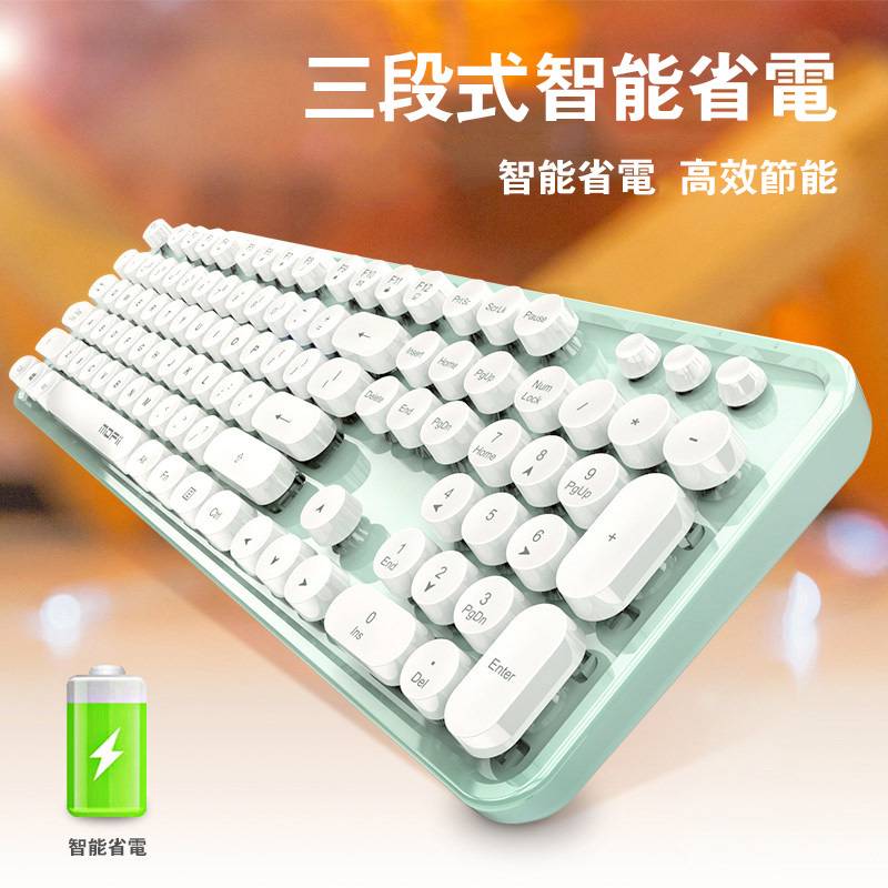 【無線鍵盤滑鼠套組】【復古打字機手感】【三段智慧省電】超棒手感圓形懸浮式鍵帽機械手感無線藍牙鍵盤滑鼠套組