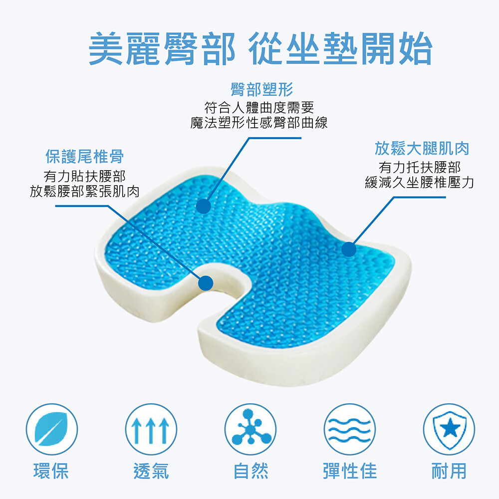 【尾椎懸空護理】【痔瘡防護】【3D凝膠涼感】【立體記憶棉】高級3D凝膠涼感立體記憶棉內芯強支撐舒壓涼感透氣護尾椎坐墊