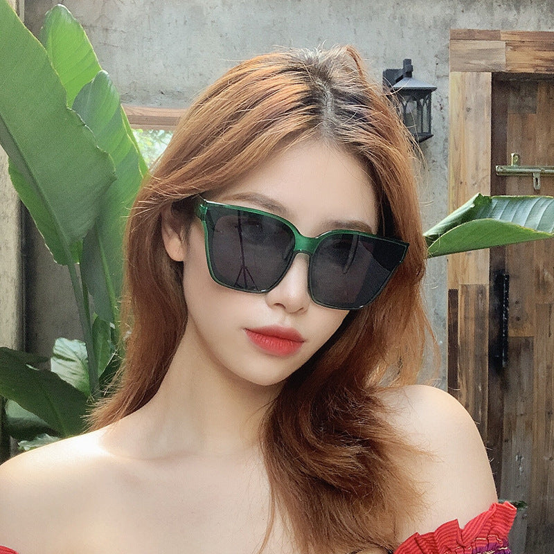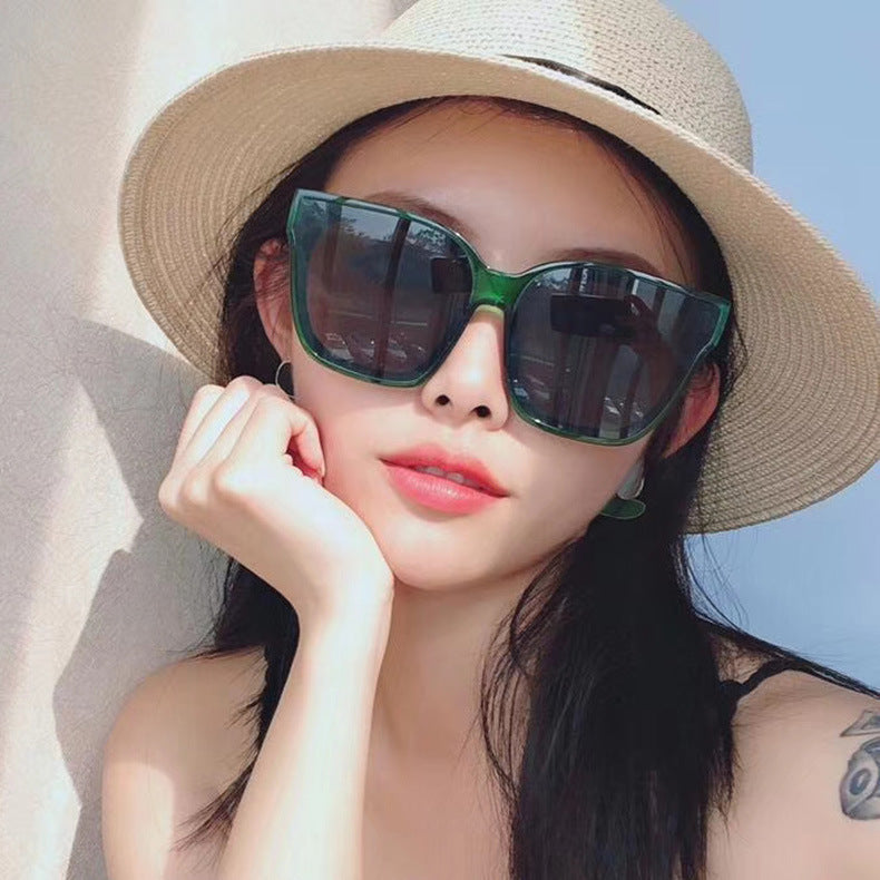 UV400韓版大框防紫外線綠框女太陽眼鏡素顔顯瘦墨鏡複古方形網紅太陽眼鏡