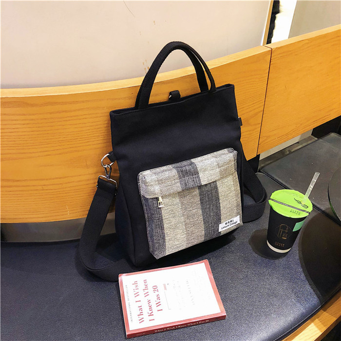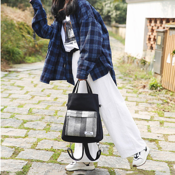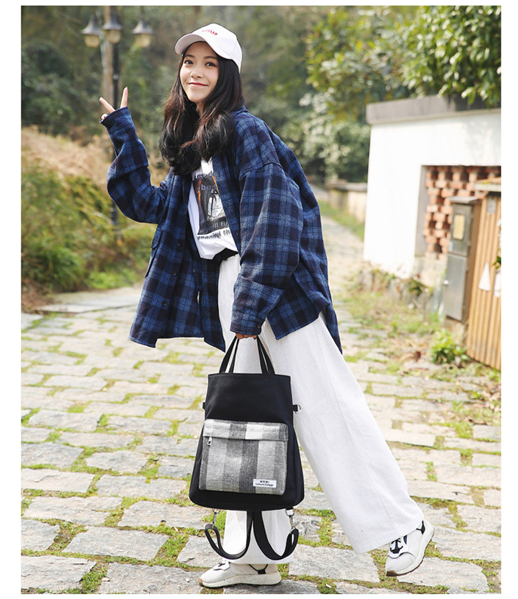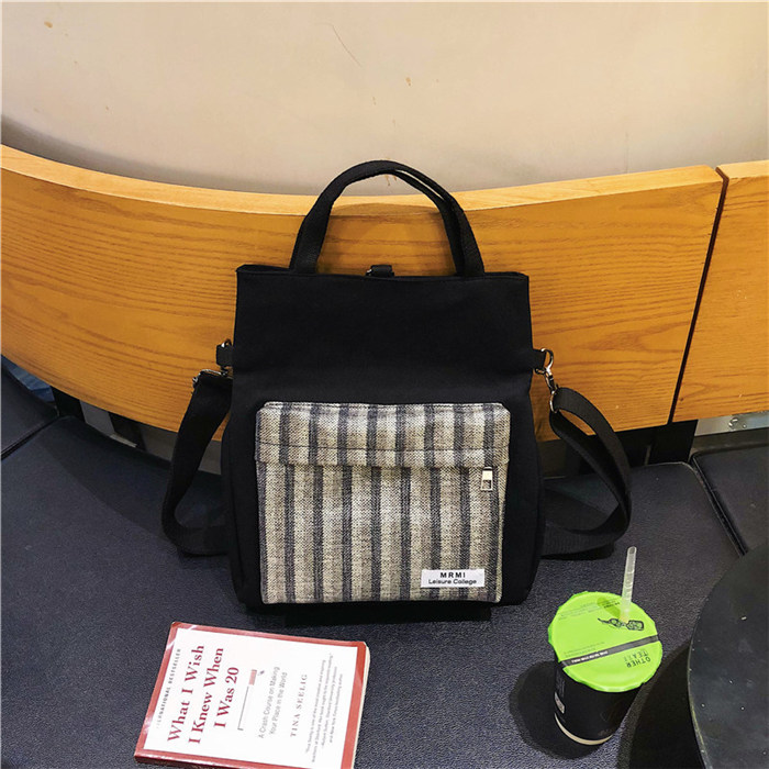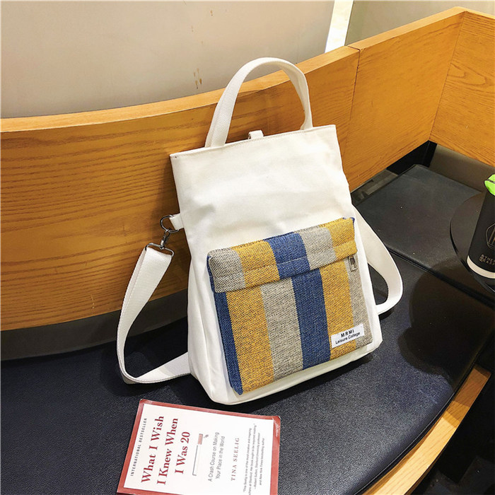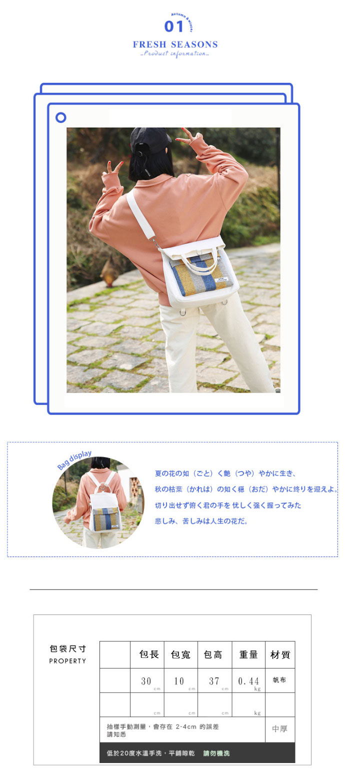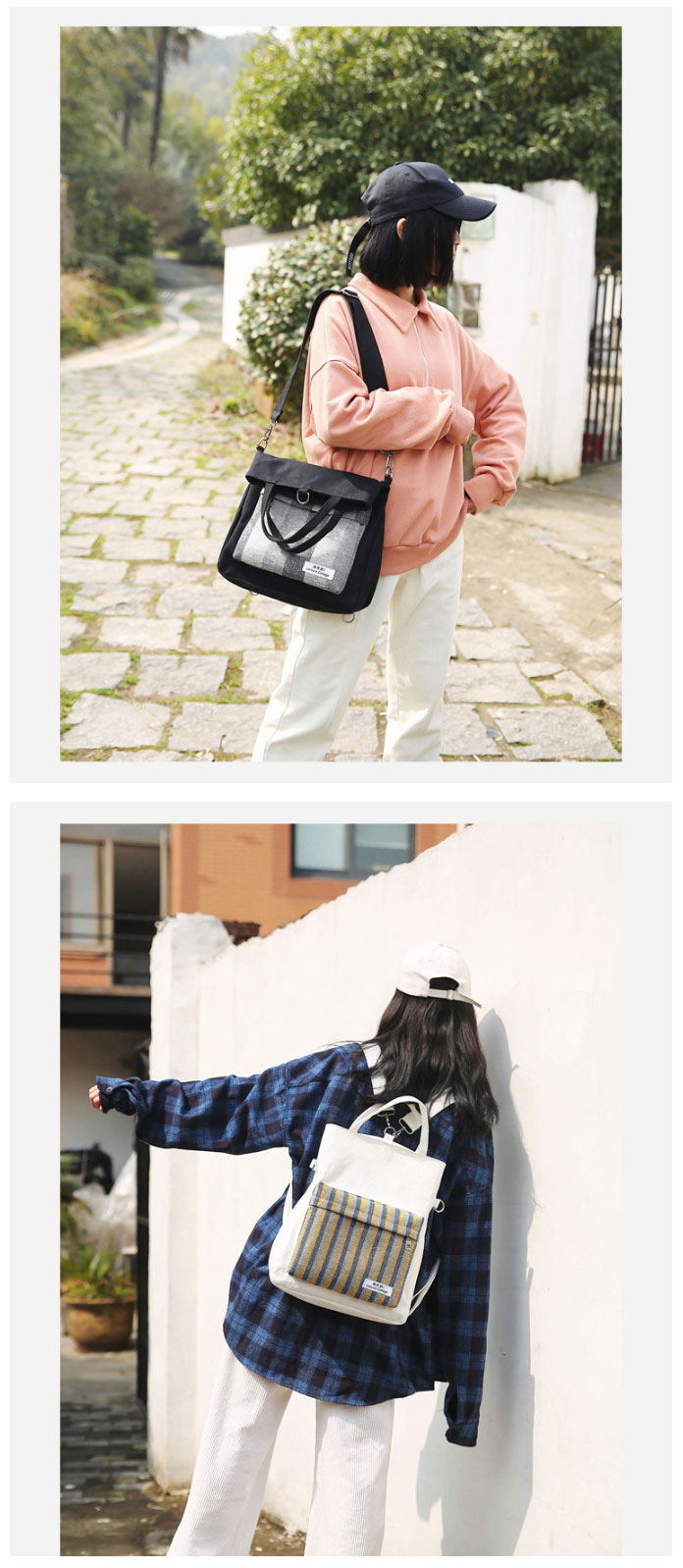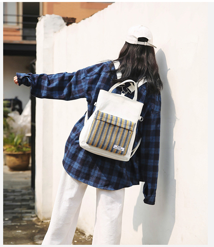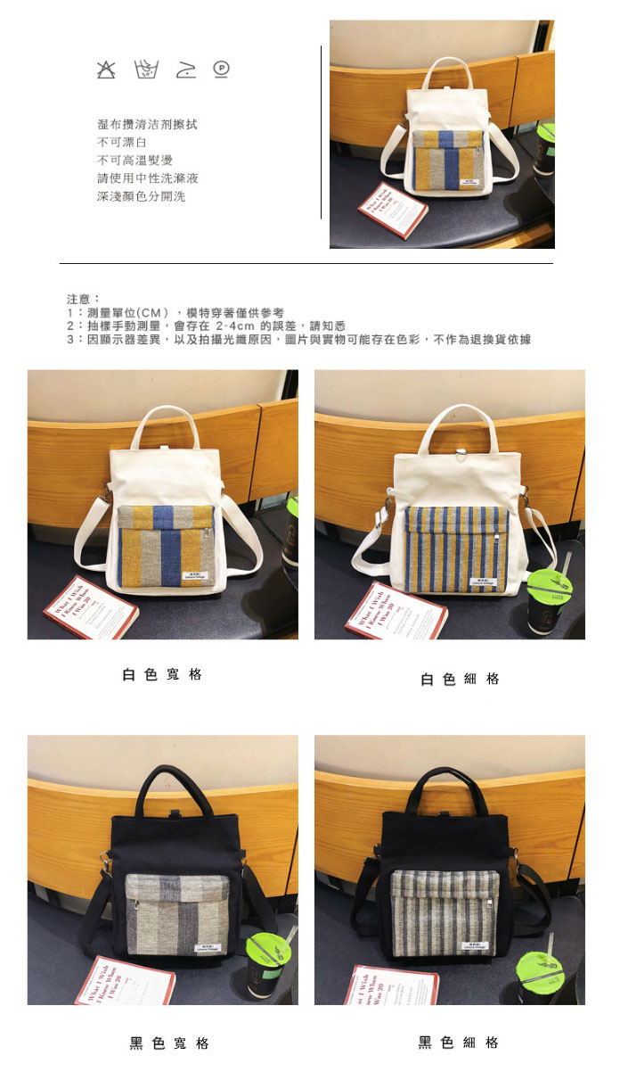 【正韓設計】【側背後背兩用】百搭實用韓版清爽條紋帆布單肩後背包