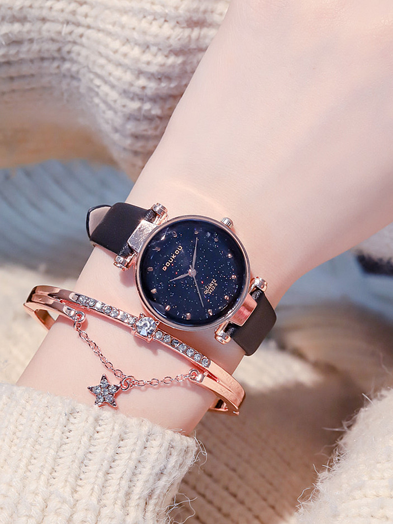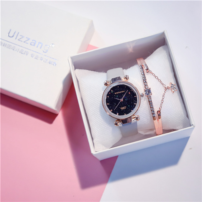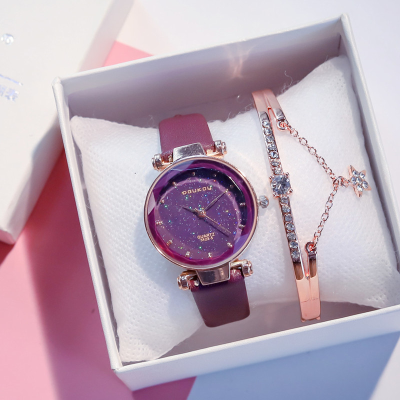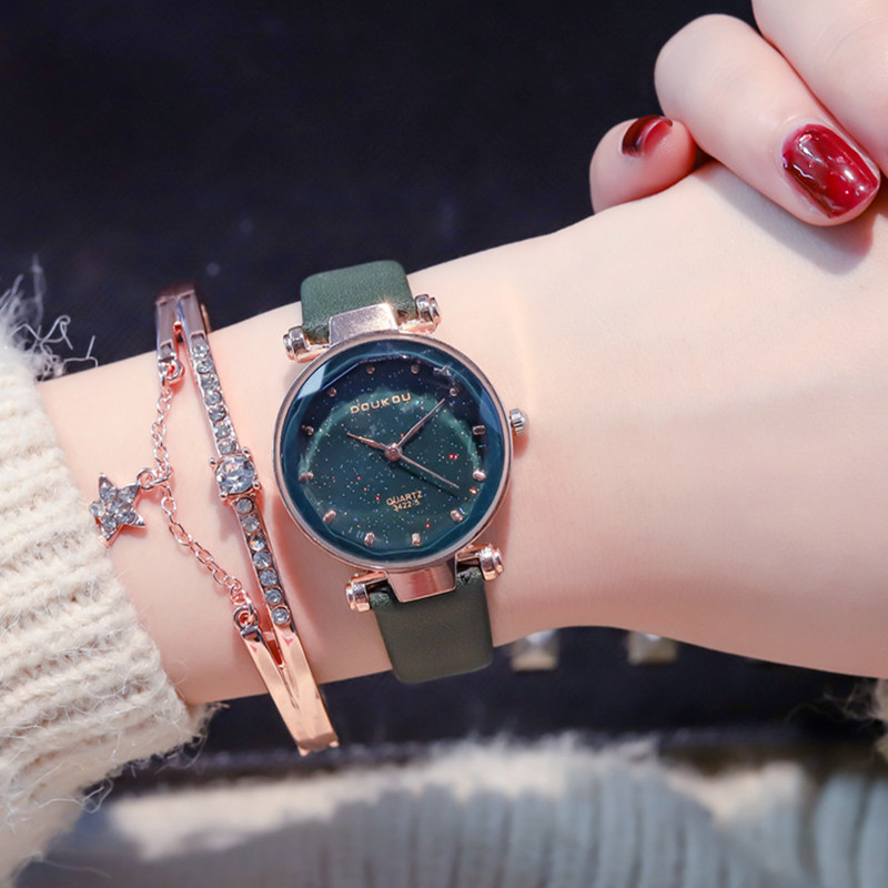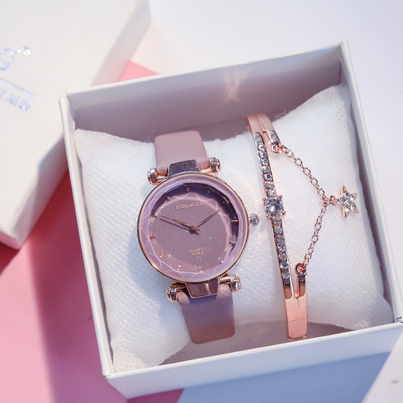 【冰激凌滿天星錶盤】【贈送手環】正韓設計百搭冰淇淋馬卡龍滿天星女錶純色皮帶女手錶