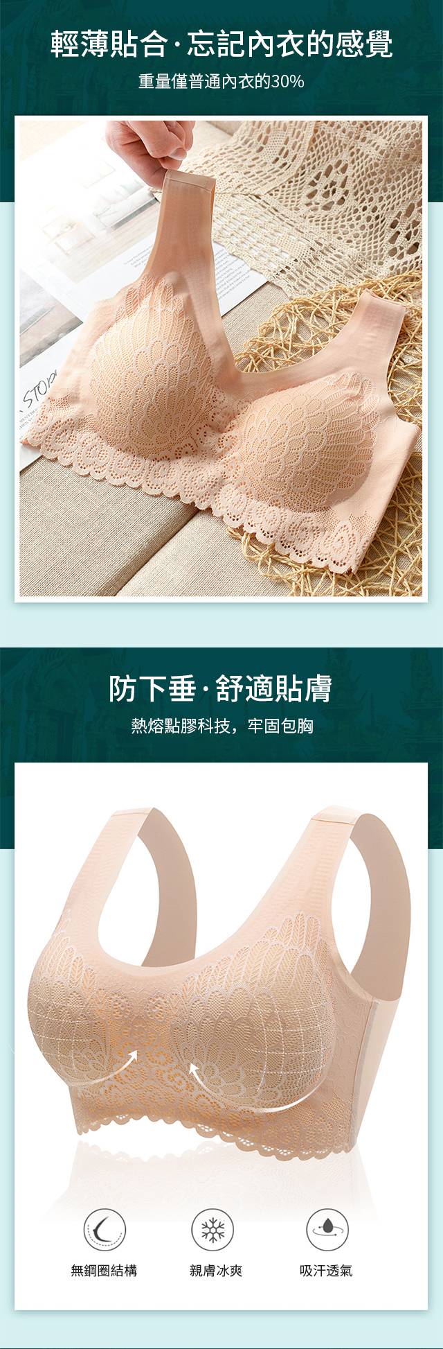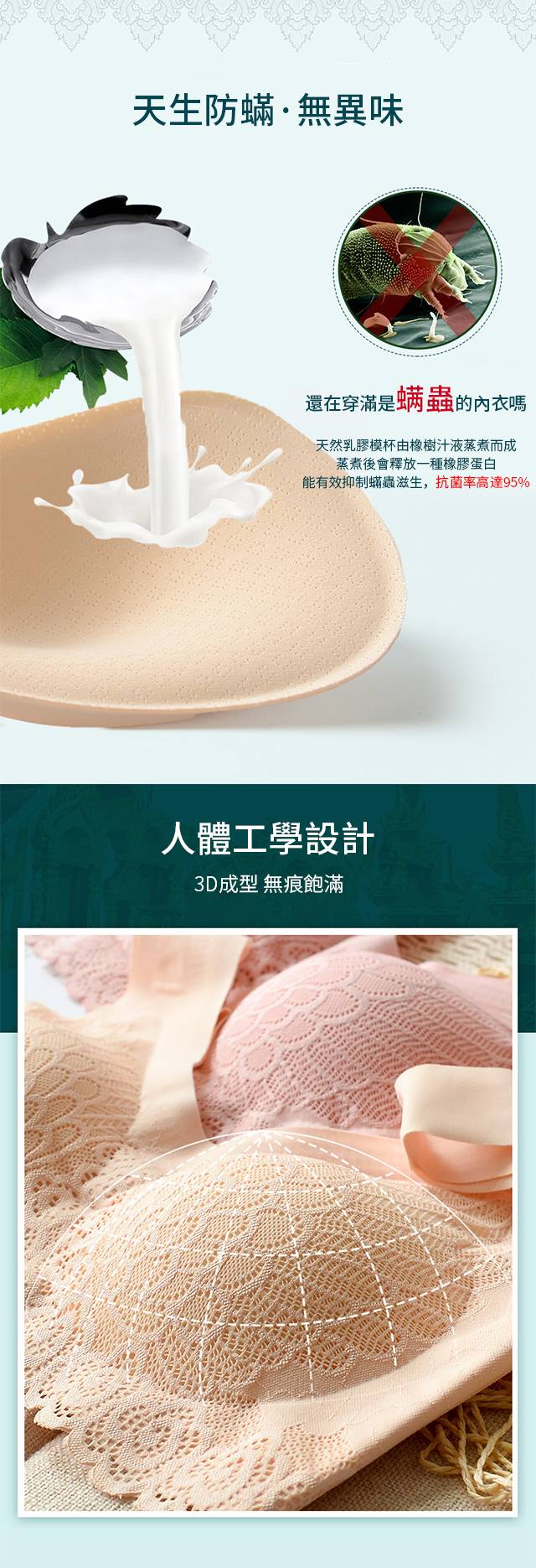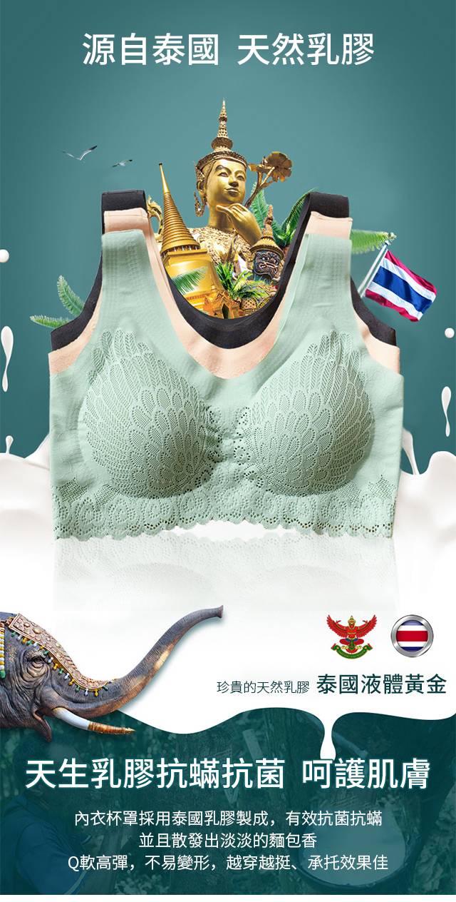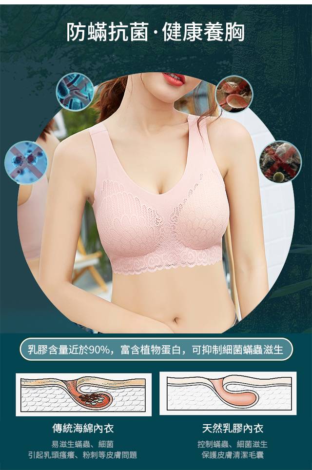 【泰國乳膠內衣4.0】【防螨抑菌】【上托聚攏側收】【超輕減壓透氣】花之色天然泰國乳膠防螨抑菌精工蕾絲無鋼圈內衣