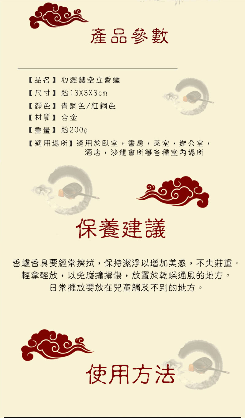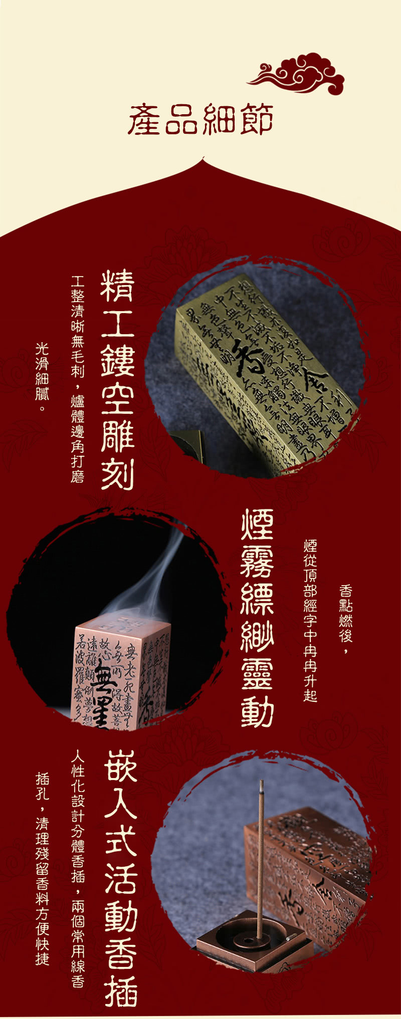 【心經古風線香爐】平安福慧古風般若波羅蜜心經精工手調古風鏤空線香爐