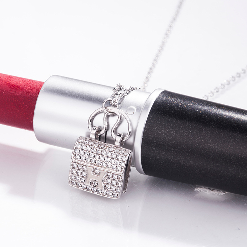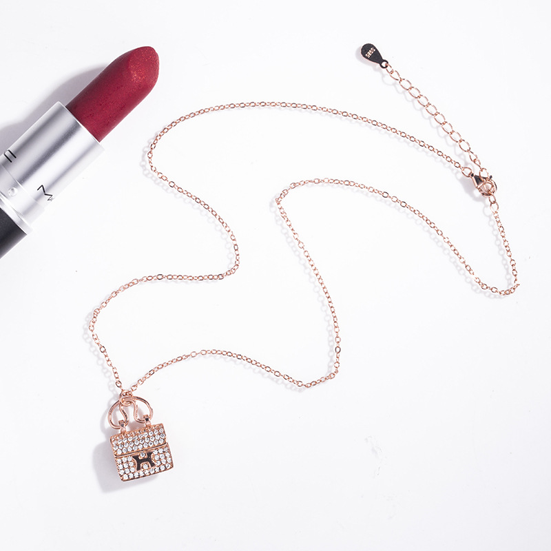 S925純銀滿鑽輕奢復古字母包包手提袋吊墜項鍊鎖骨鍊
