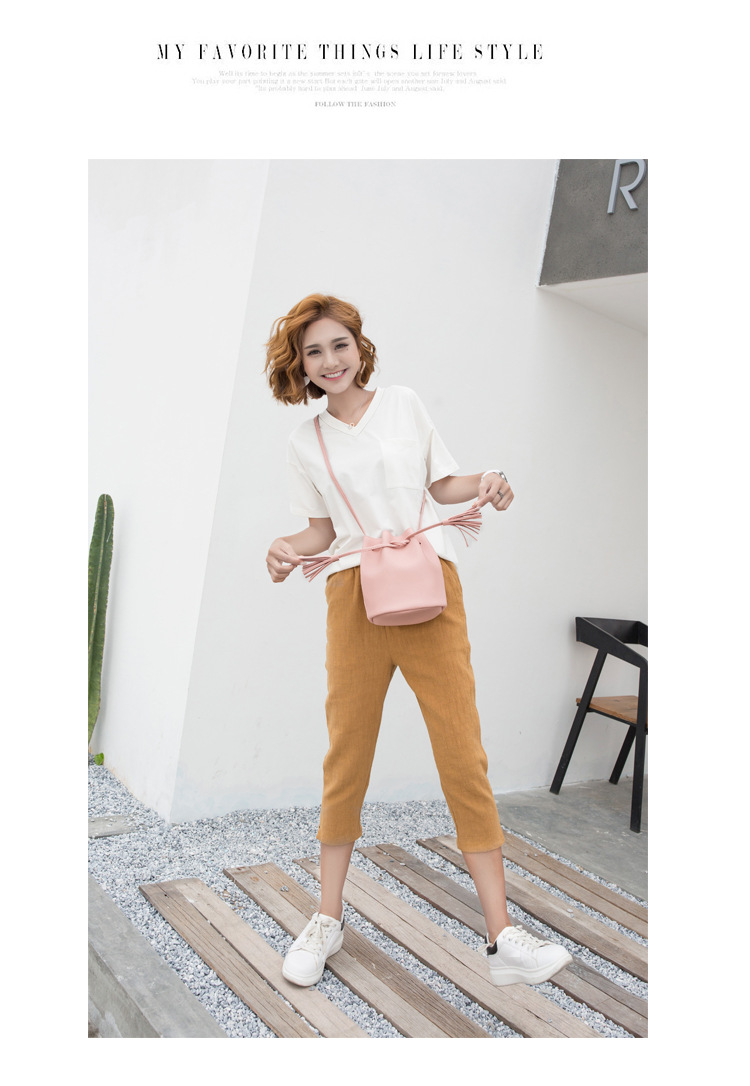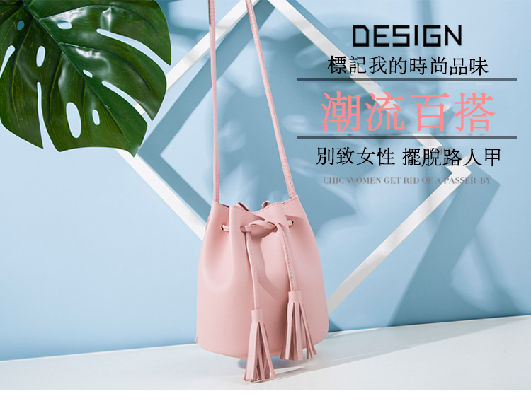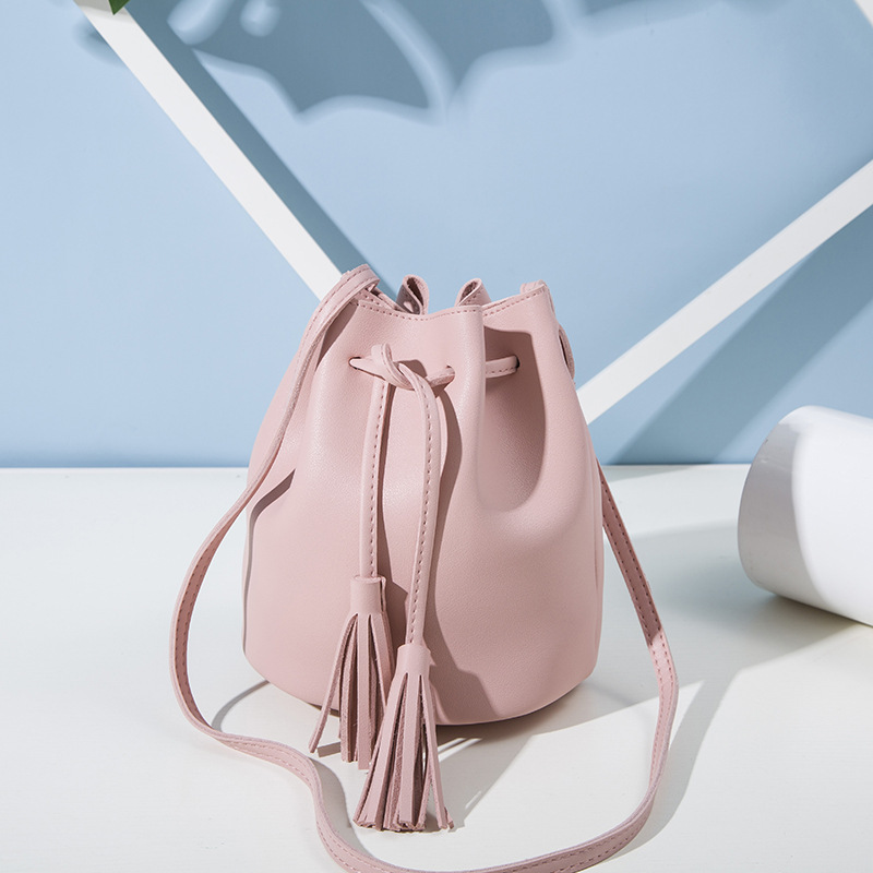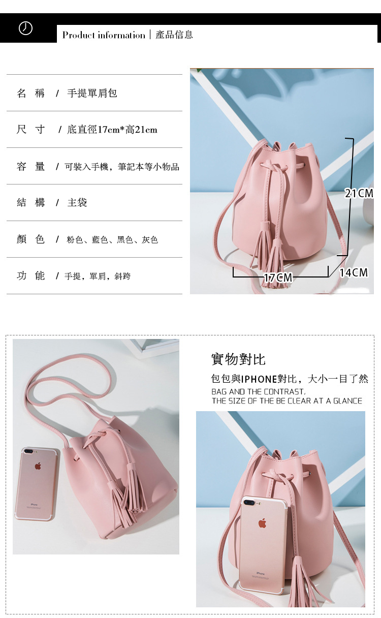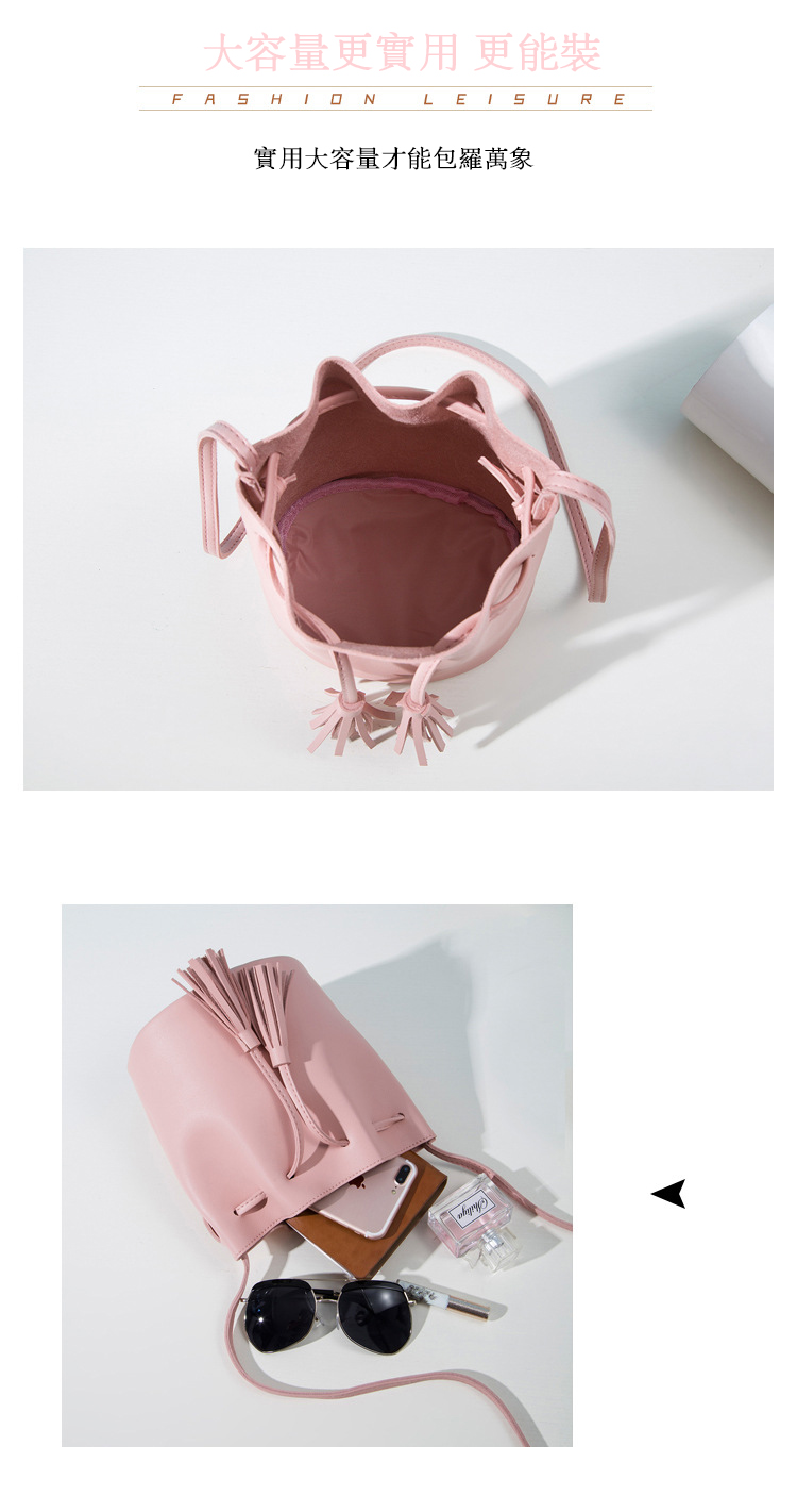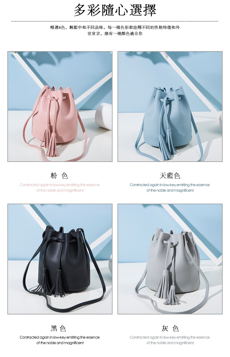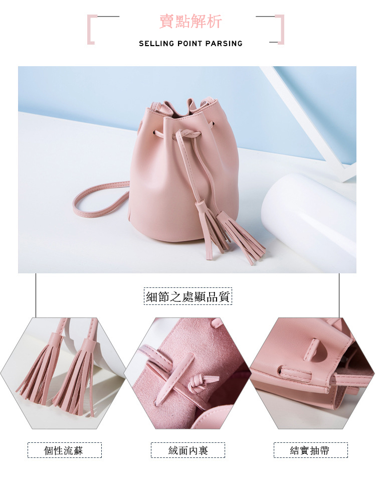 【日系純色抽帶水桶包】馬卡龍色簡約百搭大容量抽帶水桶包肩背包