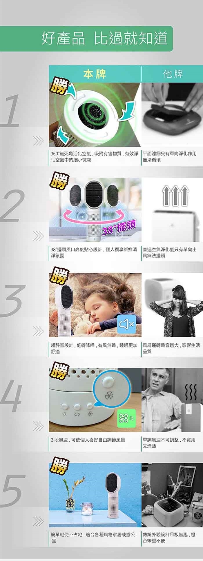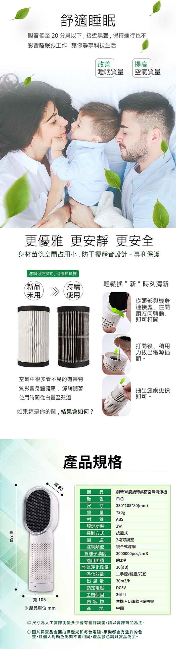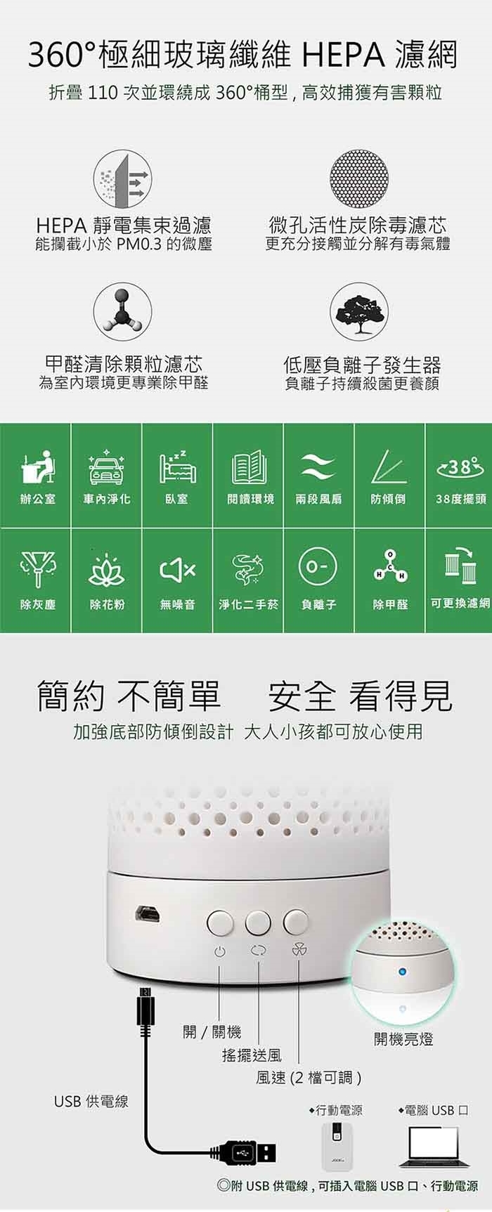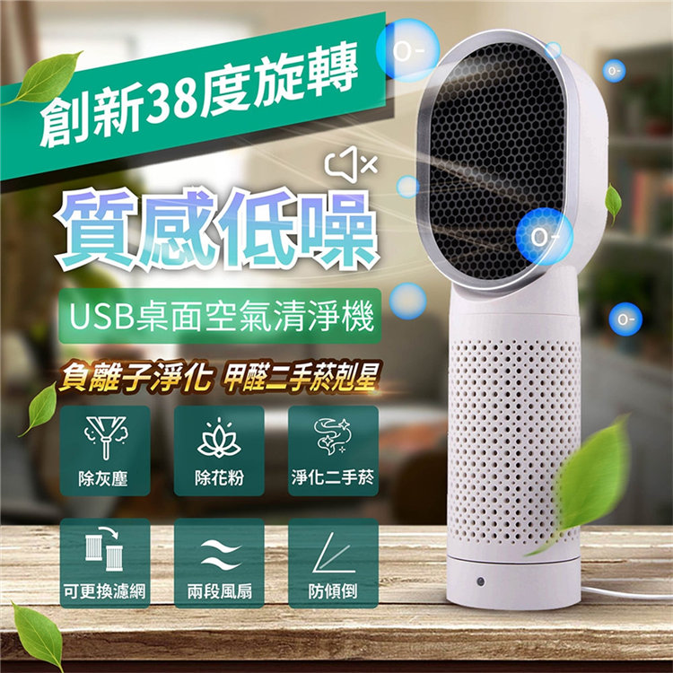 【高效全功能淨化】【USB桌面個人式】38度擺頭設計高效負離子USB桌面空氣清淨機
