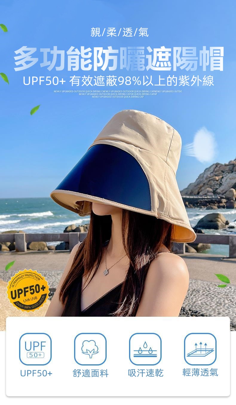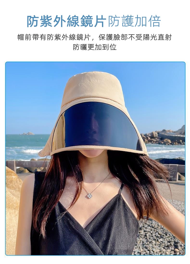 【UPF50+立體防曬】【一體式防紫外線鏡片】日韓熱銷舒適透氣吸汗速乾多功能立體防曬遮陽時尚女漁夫帽