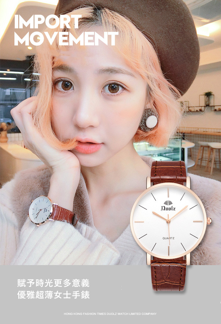 【超顯氣質】【6MM極致纖薄】日式原創設計優雅氣質玫金小圓盤皮帶超薄女石英手錶女錶