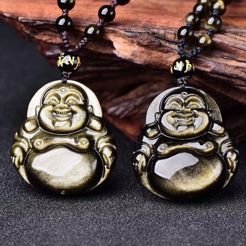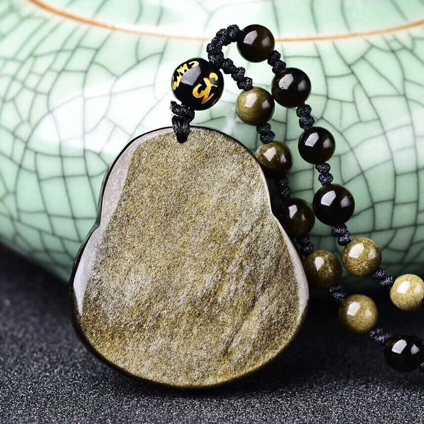 天然收藏級金曜石 | 大師級手工精雕 | 全金曜石珠鍊 | 事事如意開運護身天然金曜石彌勒佛大肚笑佛吊墜項鍊