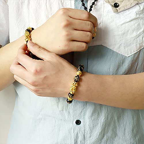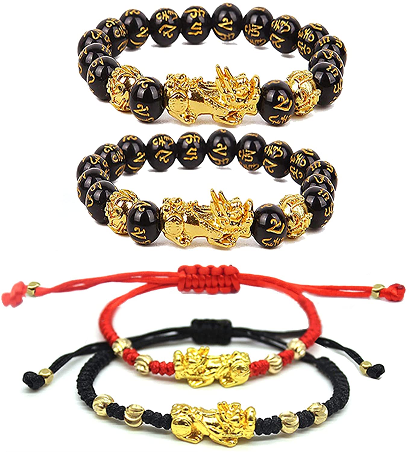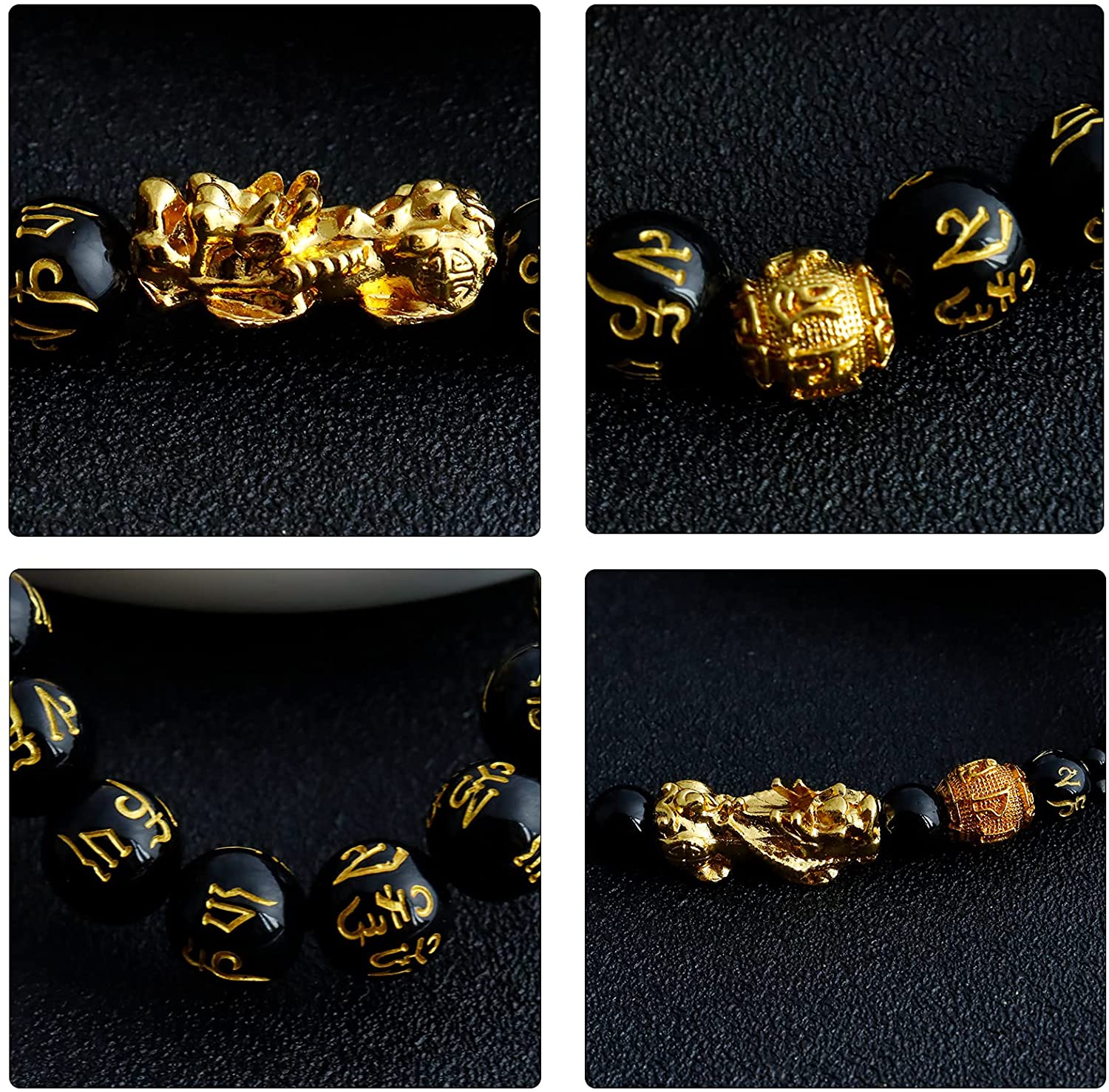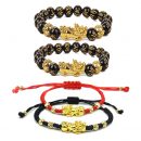 福利出清鍍金貔貅手鍊四入組 | 黑曜石六字真言串珠 | 招財護主黑曜石鍍金貔貅六字真言串珠紅繩貔貅手鍊四入組