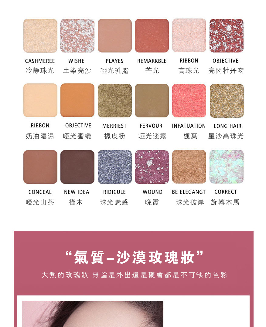 【18色沙漠玫瑰眼影盤】【全熱賣色系】IG網紅沙漠黃昏玫瑰18色眼影大地色珠光啞光不暈染眼影盤