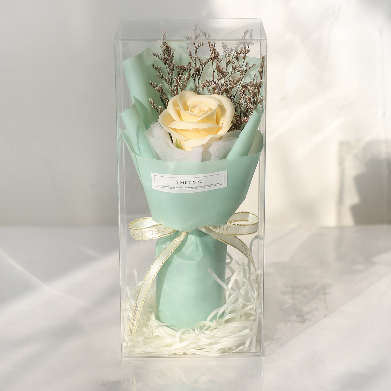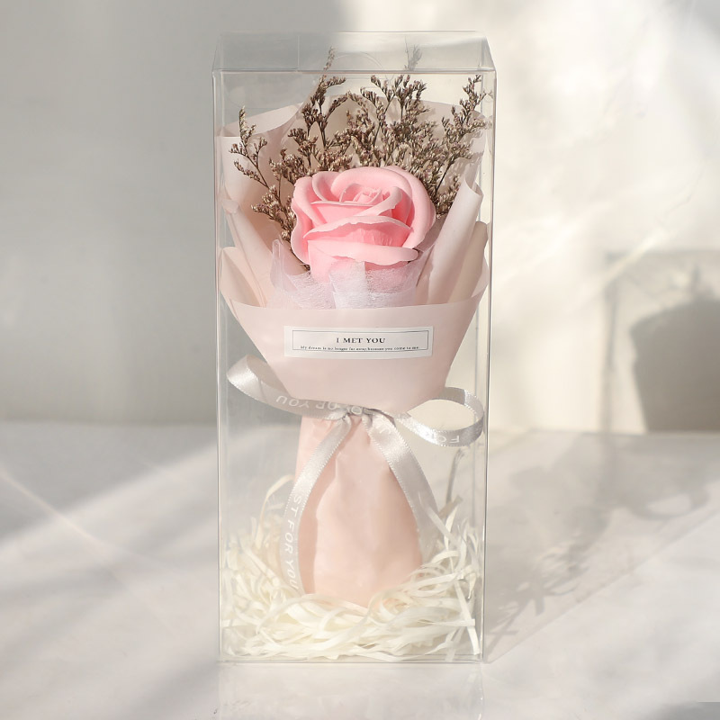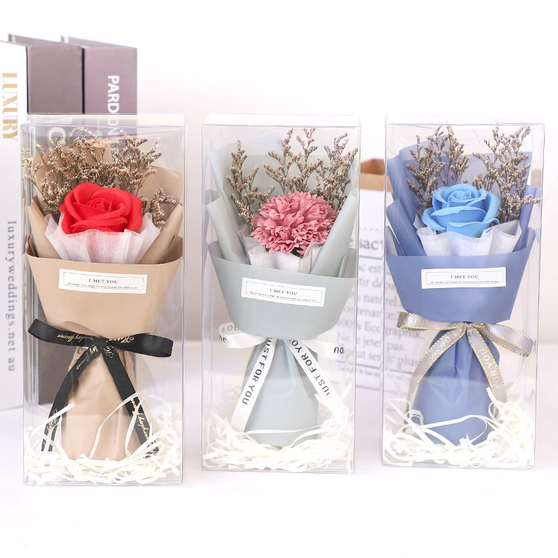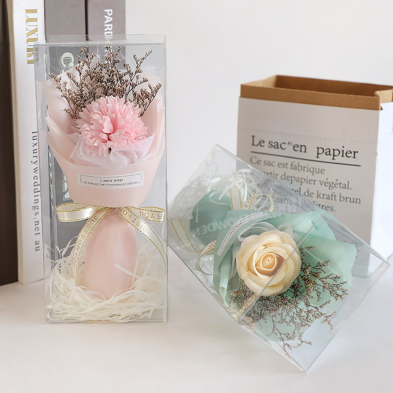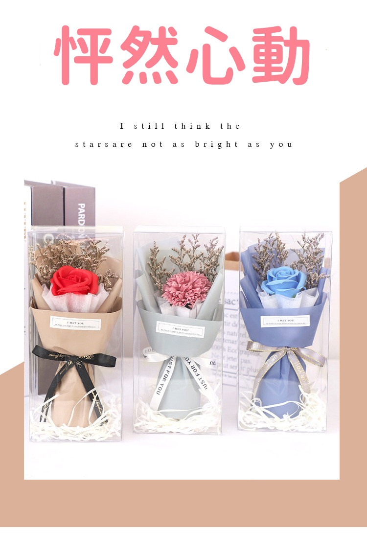 【買一送一】【怦然心動】【法式香皂玫瑰拉菲草禮盒】精緻純手工法式浪漫超逼真香皂永生花玫瑰康乃馨拉菲草PVC禮盒組