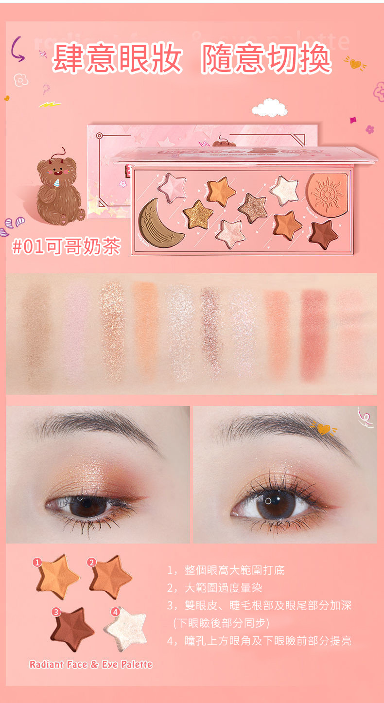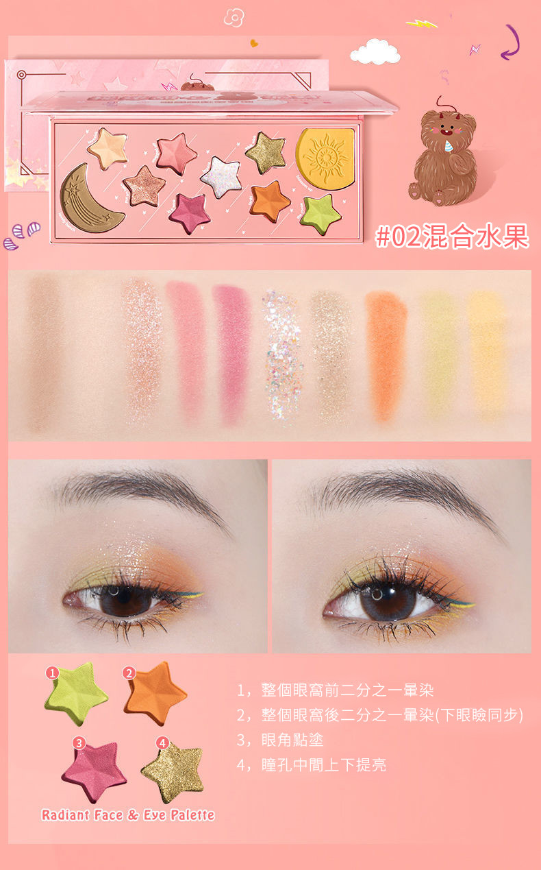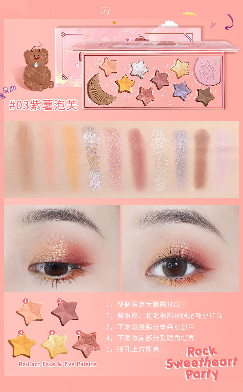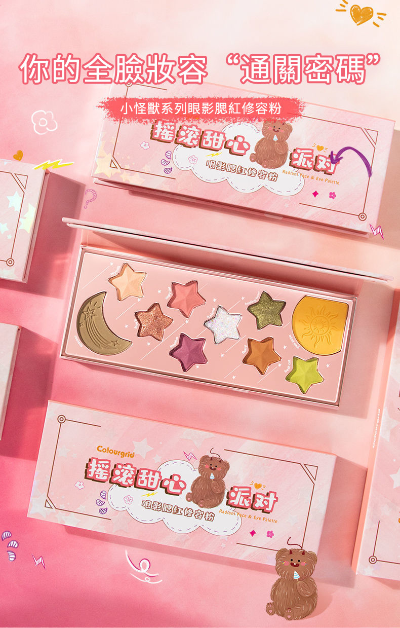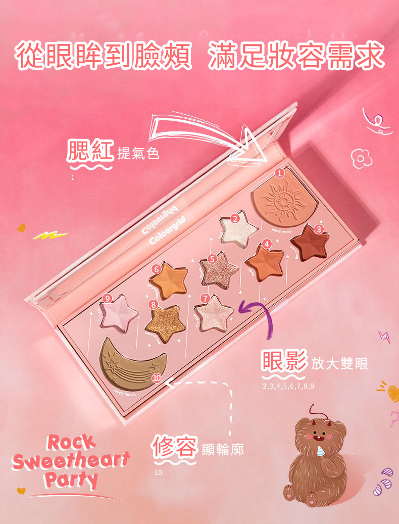 【眼影腮紅修容彩妝組】【搖滾甜心】韓系實用百搭奶茶水果紫薯泡芙色系眼影腮紅修容粉便攜彩妝組