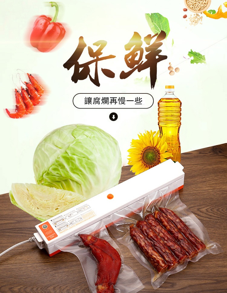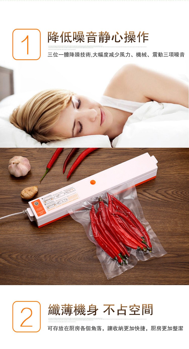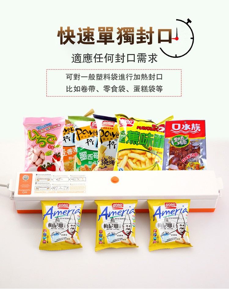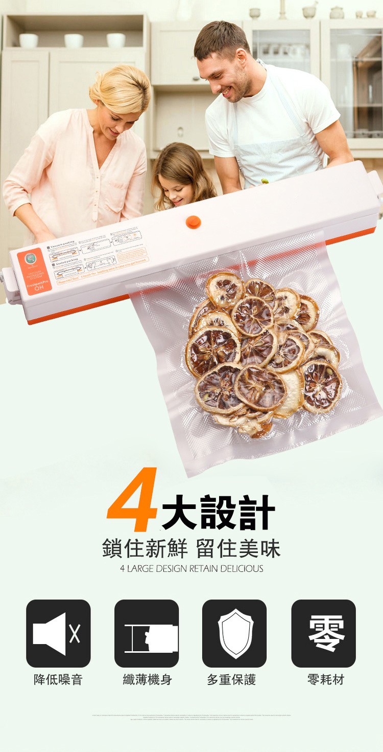 真空包裝封口一體 | 全自動一鍵操作 | 強勁澎湃吸力 | 家商兩用 | 多包同時工作 | 日式家商兩用保鮮抗菌食品乾貨小型高效真空密封一體機