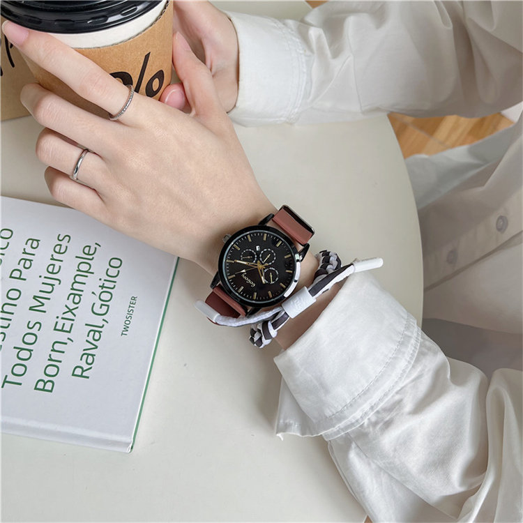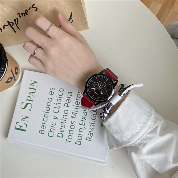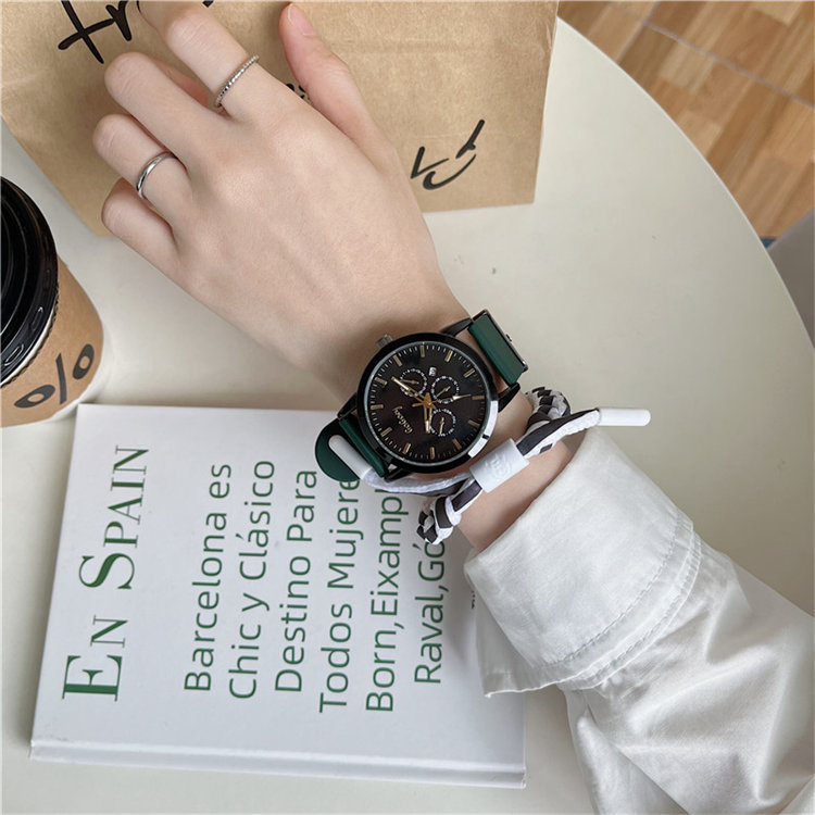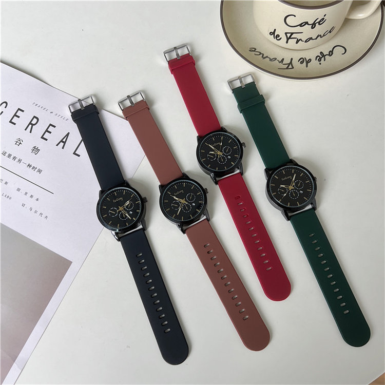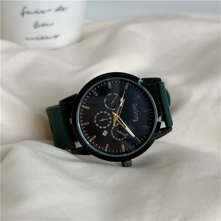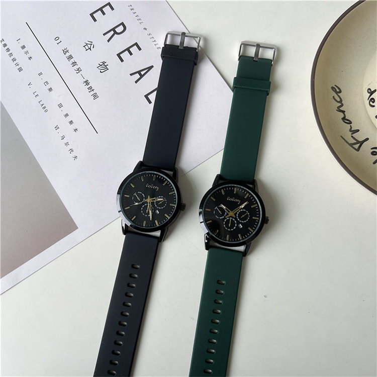 矽膠錶帶柔軟舒適,帥氣裝飾三眼大表盤