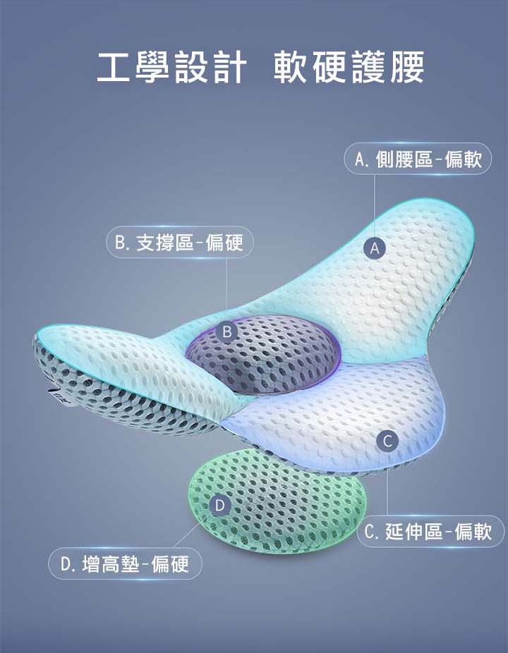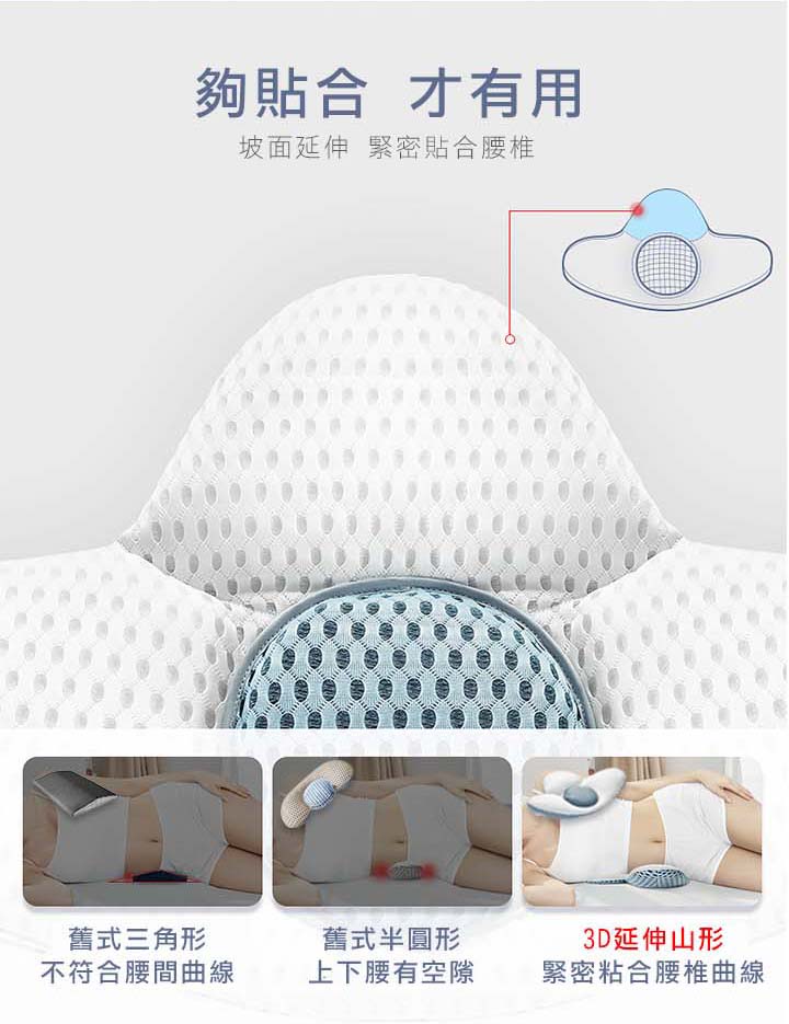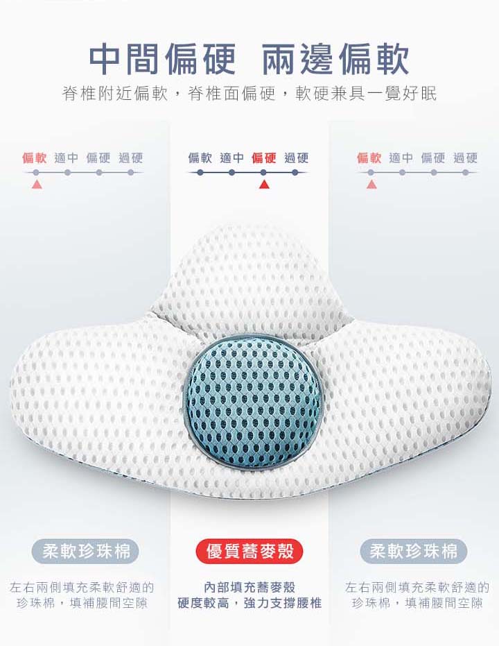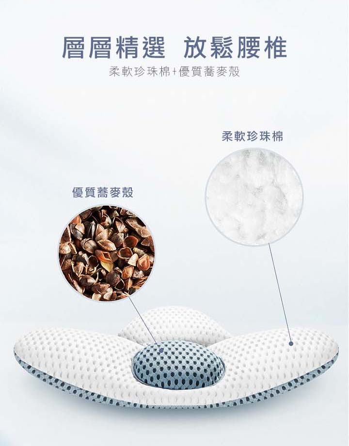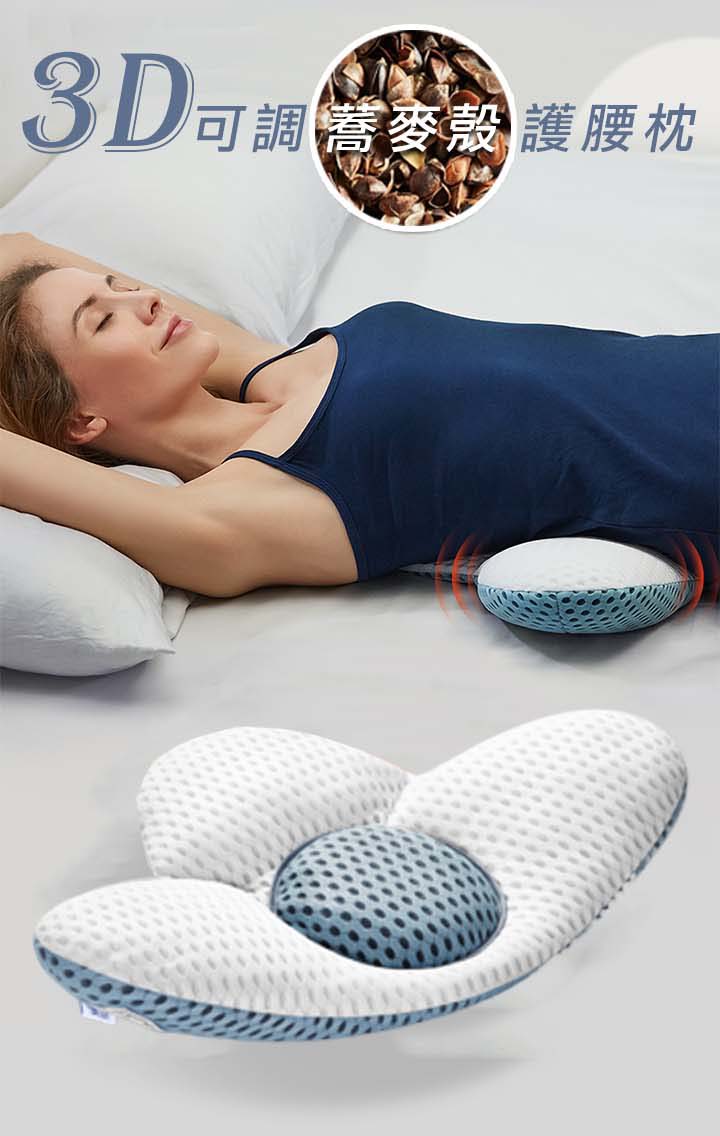 【3D可調支撐護腰枕】【天然蕎麥填充】【三明治網眼布超透氣】人體工學設計科技3D支撐軟硬蕎麥透氣護腰枕頭