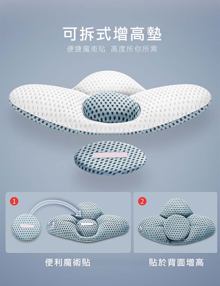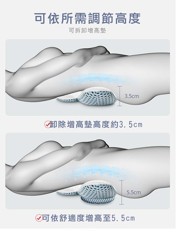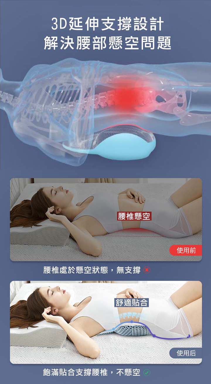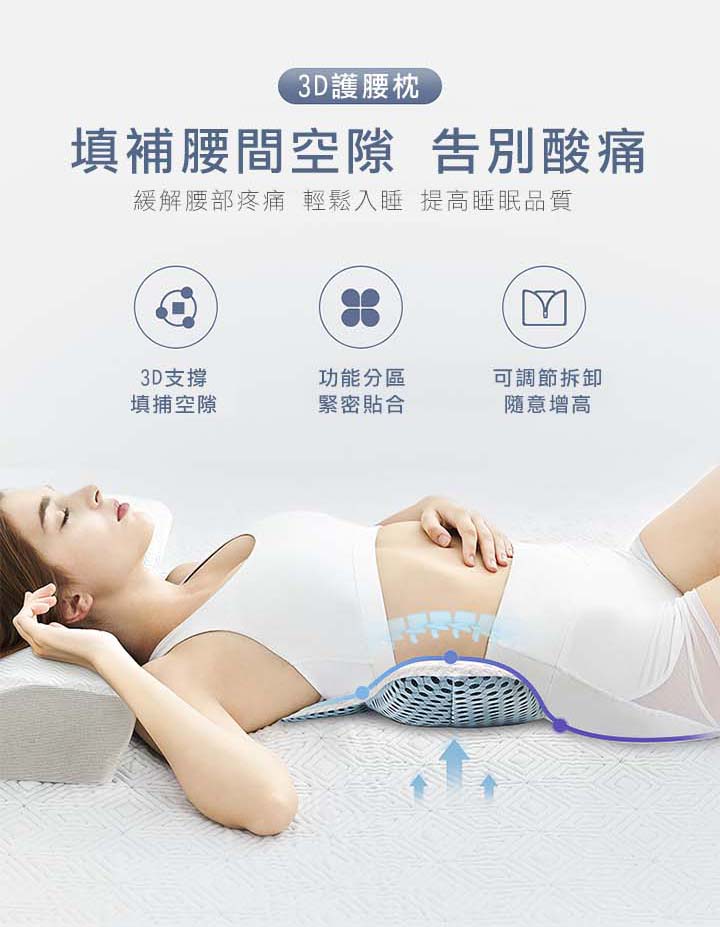 【3D可調支撐護腰枕】【天然蕎麥填充】【三明治網眼布超透氣】人體工學設計科技3D支撐軟硬蕎麥透氣護腰枕頭