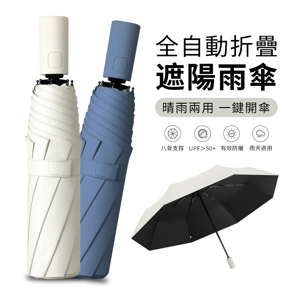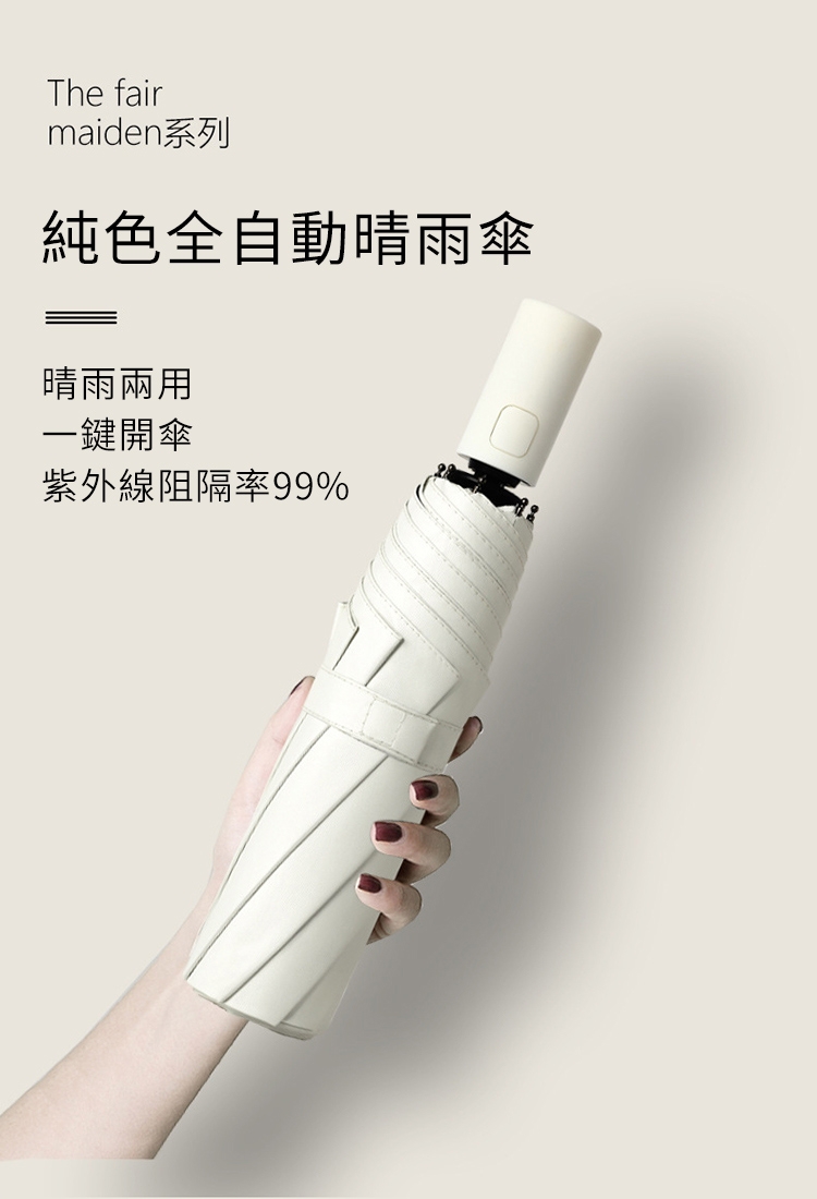 日式莫蘭迪色晴雨傘 | 紫外線阻隔99% | 全自動一鍵開傘 | 日式美型純色大傘面黑膠防曬擋雨抗風晴雨兩用折疊傘