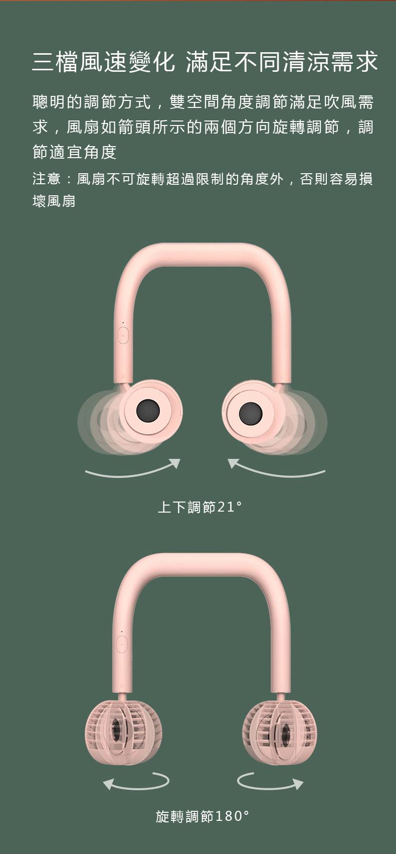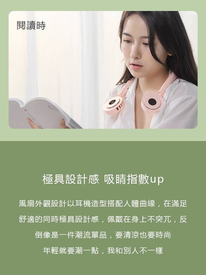 【耳機式美型掛脖風扇】【隱藏式風道】【無刷電機超降噪】網美同款美型耳機式模擬自然風道靜音低噪掛脖運動健身USB風扇