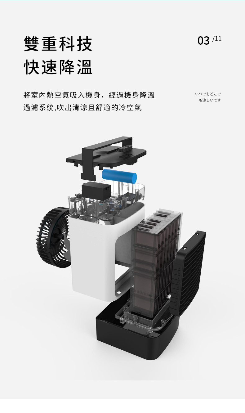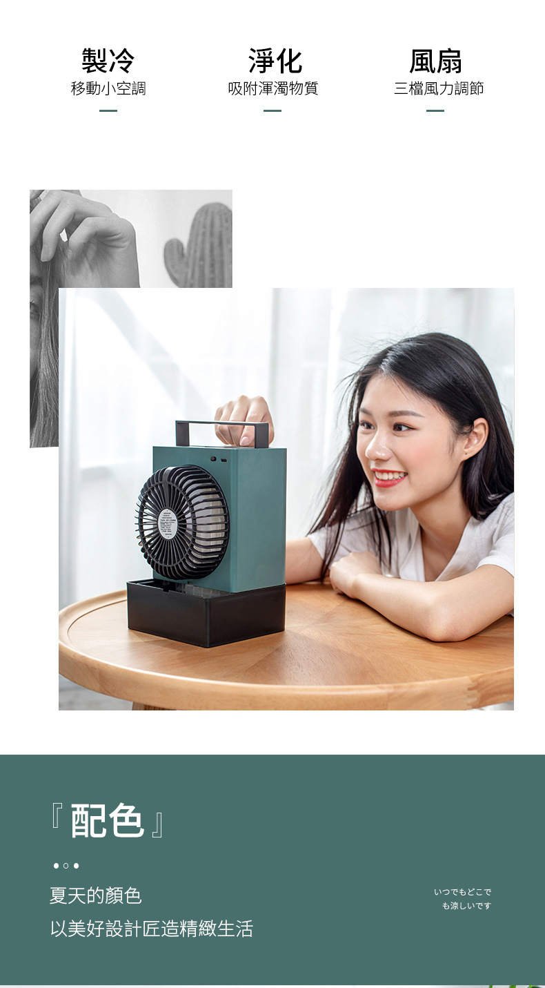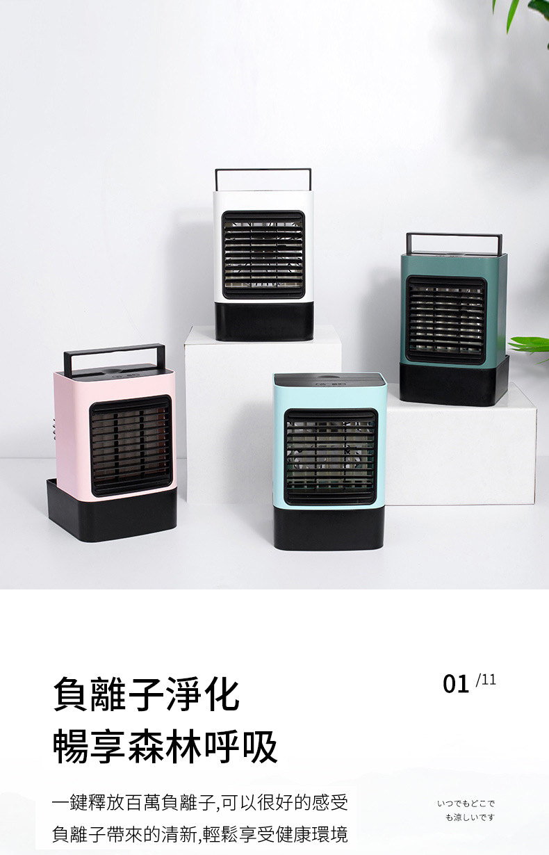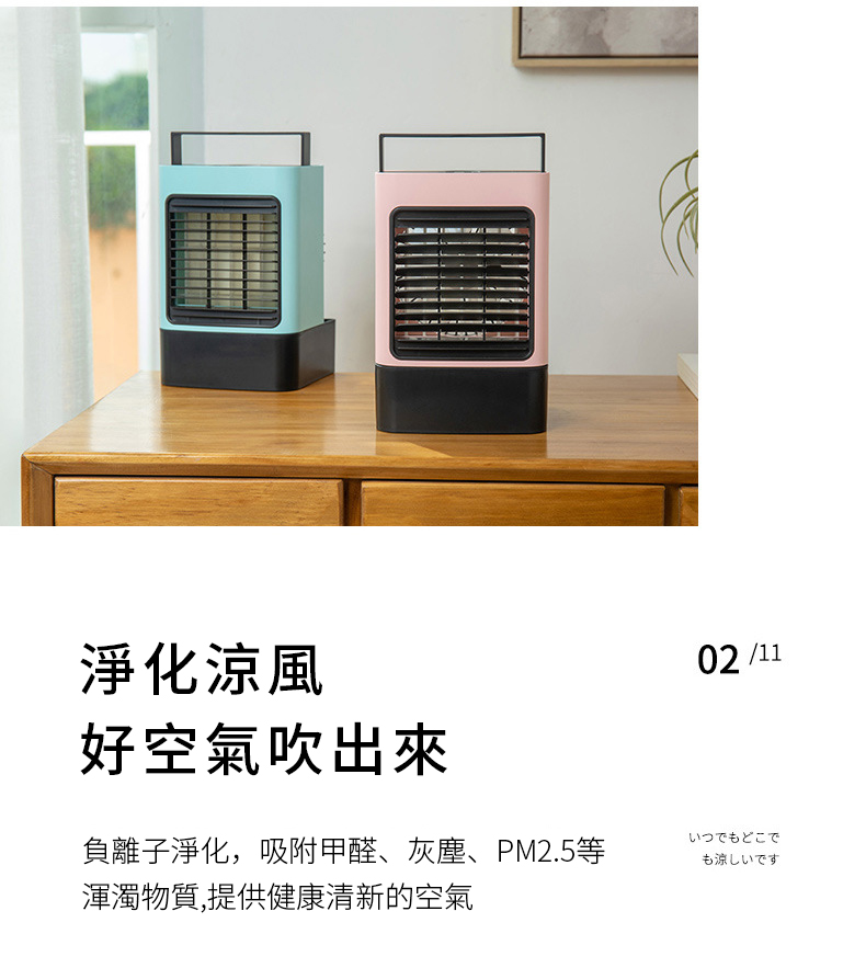 【二代負離子迷你空調冷氣機】【極速勁涼廣角送風】【便捷加水大水箱】【夜燈伴睡】日式美型二代負離子淨化加濕迷你小冷氣機水冷扇