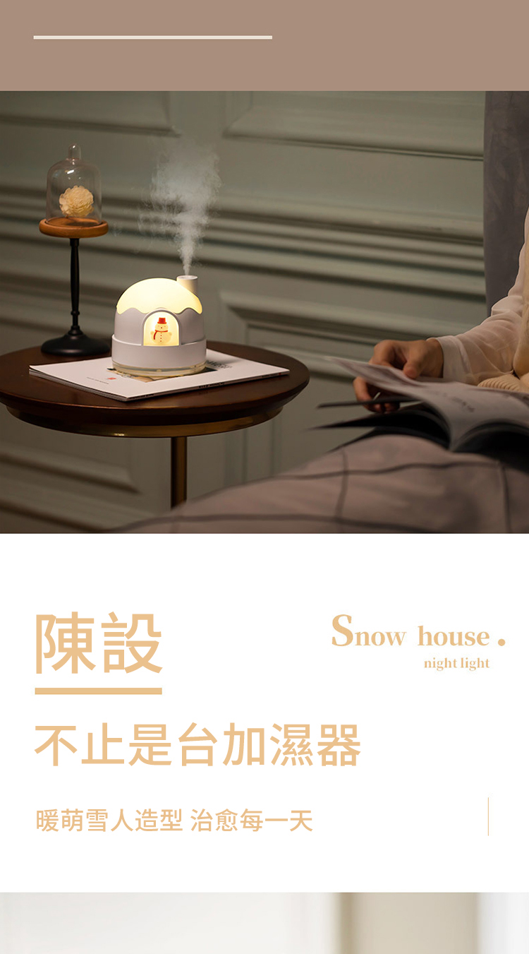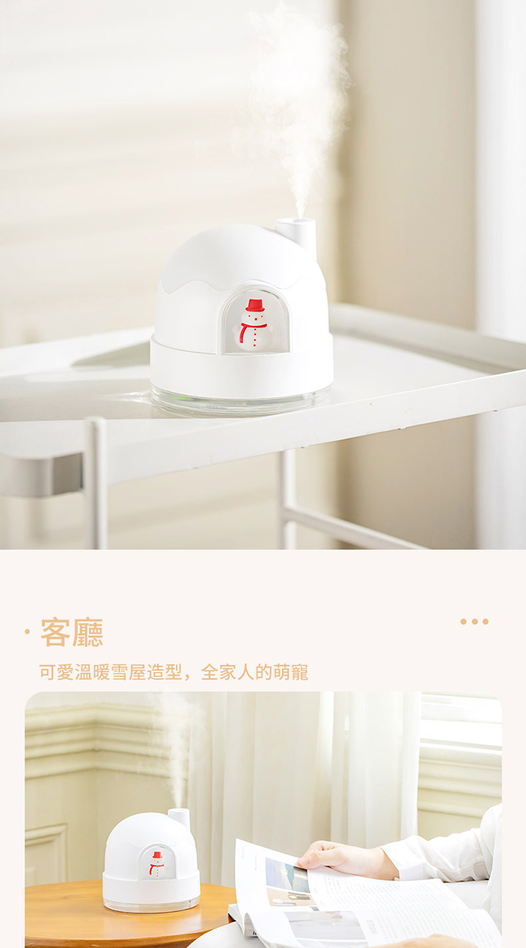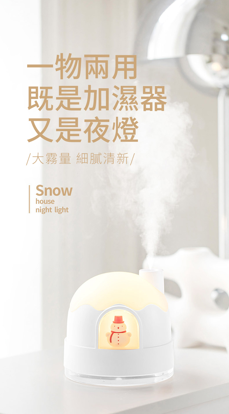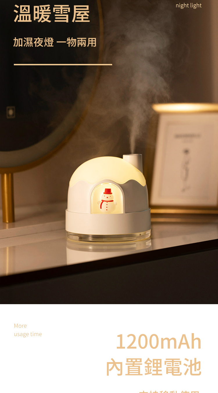 【極地雪夜水氧機加濕器】【溫馨伴睡夜燈】【智慧防乾燒】【內置鋰電支援無線】北歐設計雪夜夢境守護超音波奈米霧化夜燈加濕器