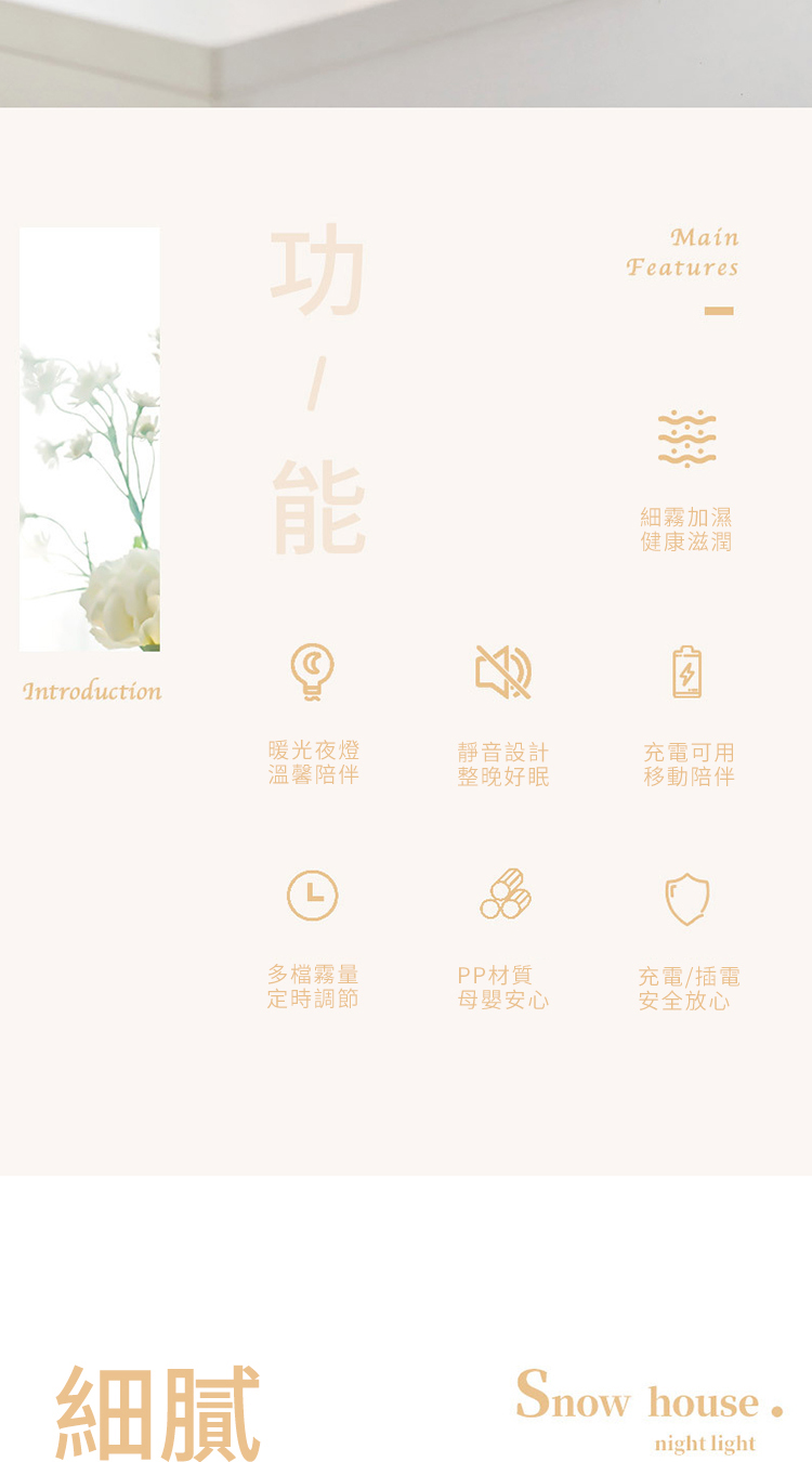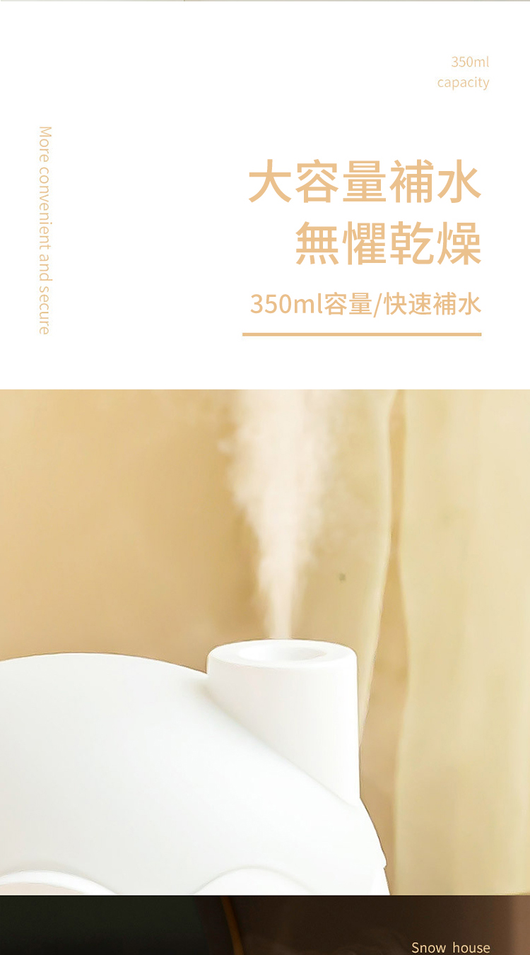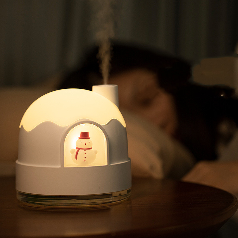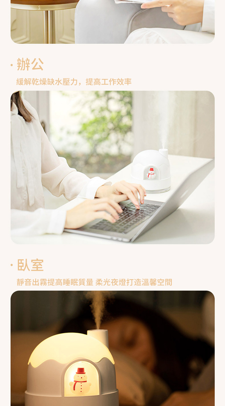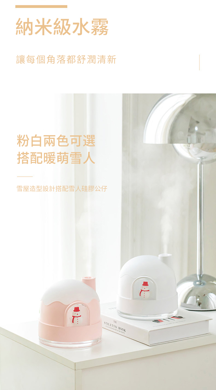 【極地雪夜水氧機加濕器】【溫馨伴睡夜燈】【智慧防乾燒】【內置鋰電支援無線】北歐設計雪夜夢境守護超音波奈米霧化夜燈加濕器