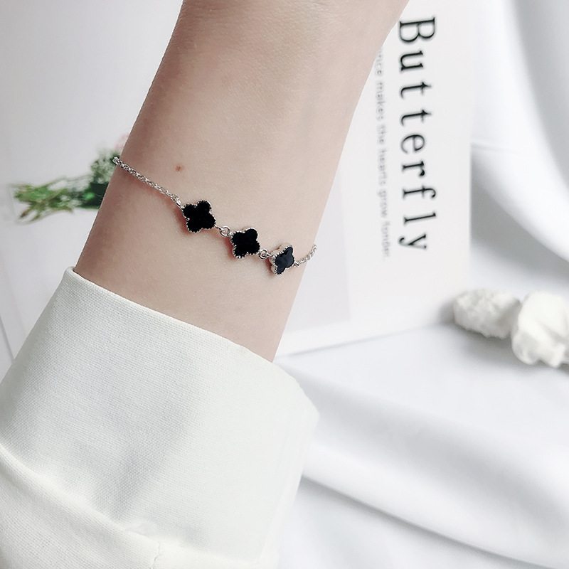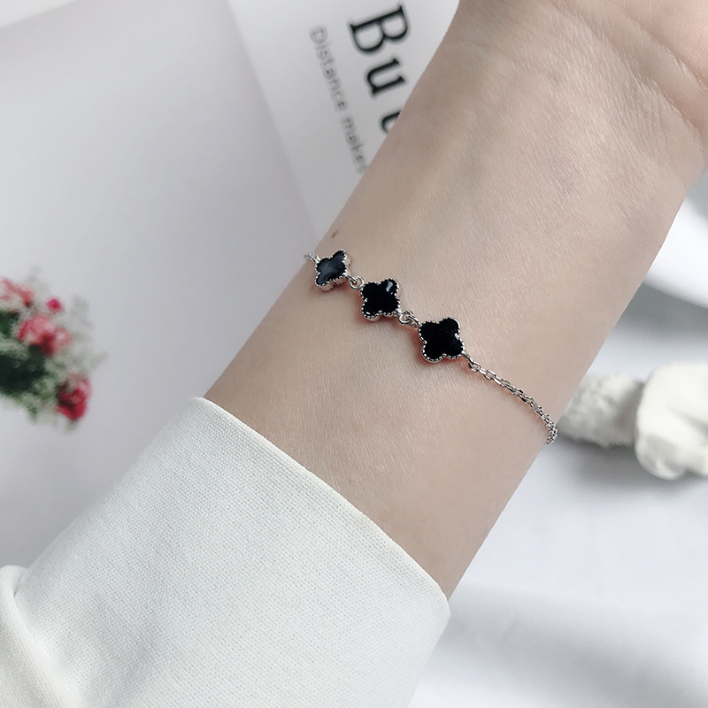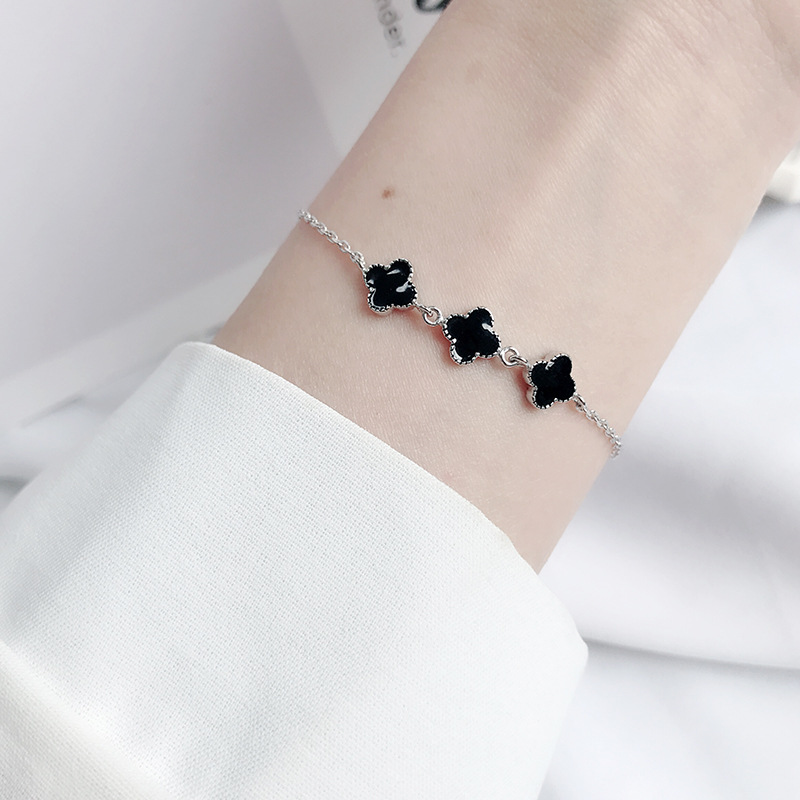 幸運的四葉草 | 925純銀鑲嵌黑瑪瑙 | 赫本風設計師款女手鍊
