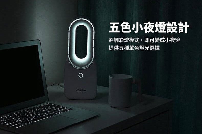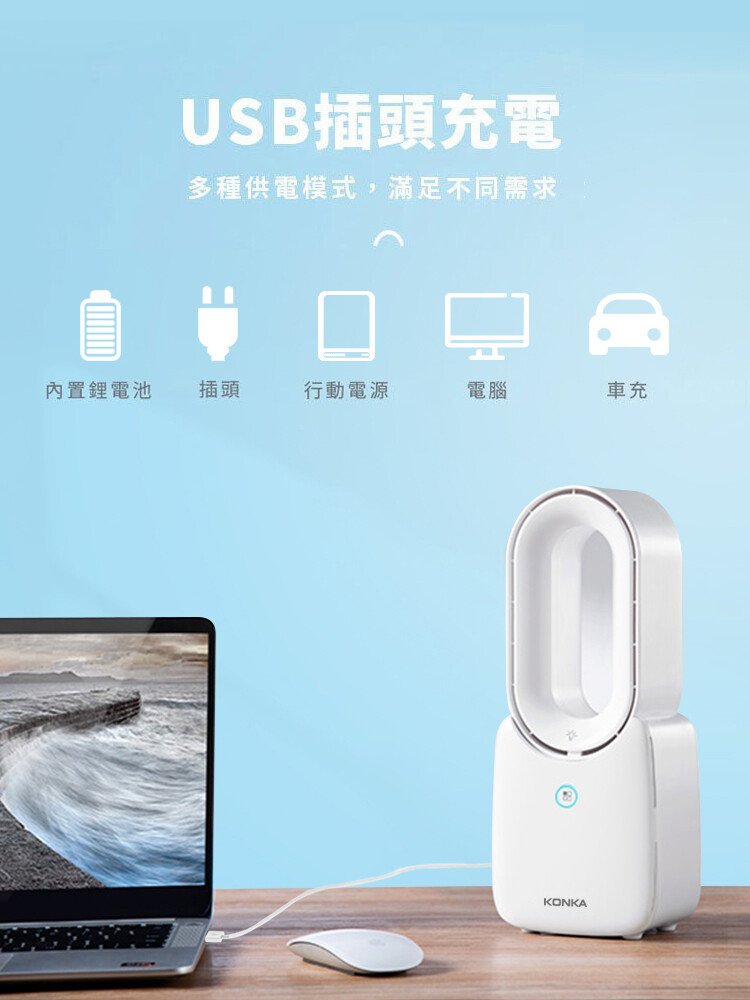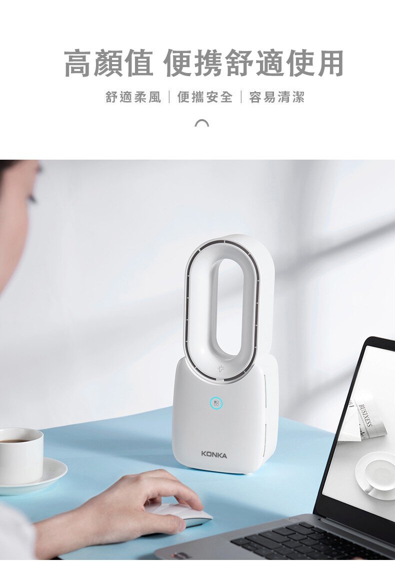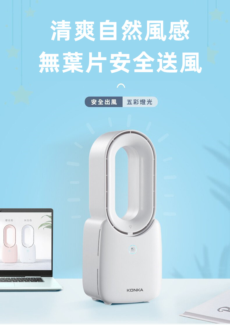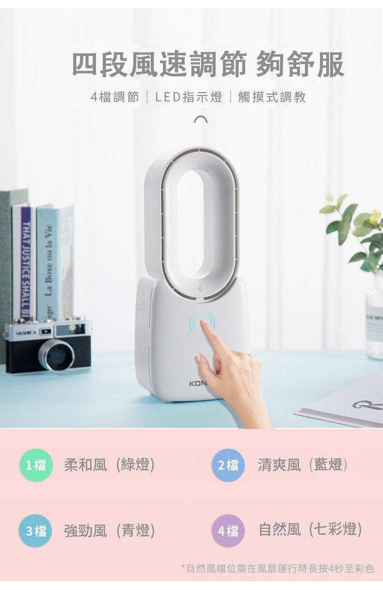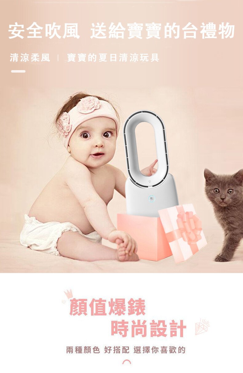 【美型無葉片風扇】【渦輪增壓輕音風道】【四檔自然暢涼風感】【伴睡小夜燈】日式美型安全無葉片增壓輕音USB台式隨身風扇