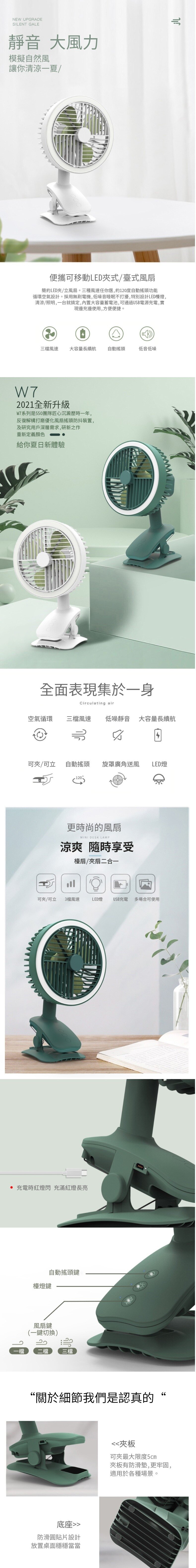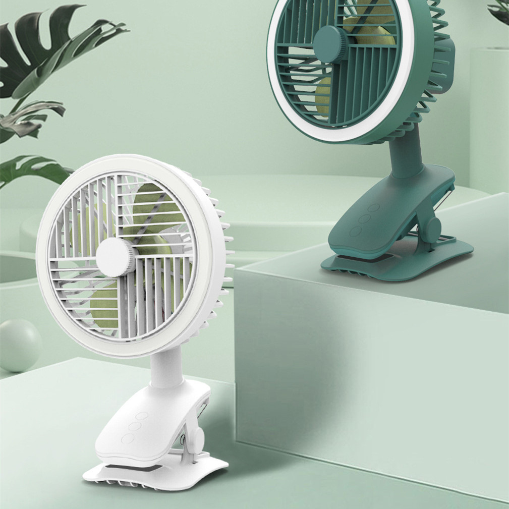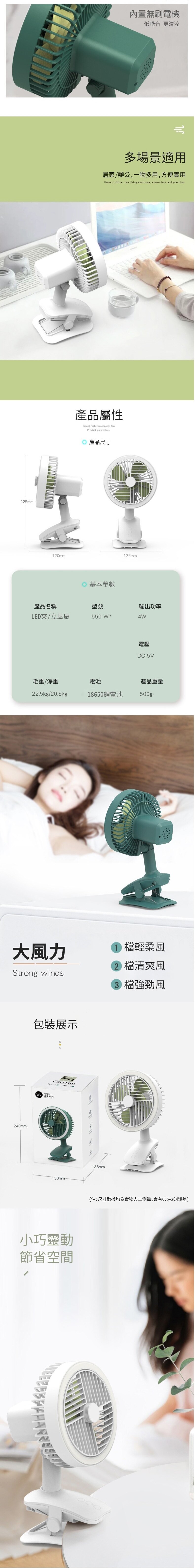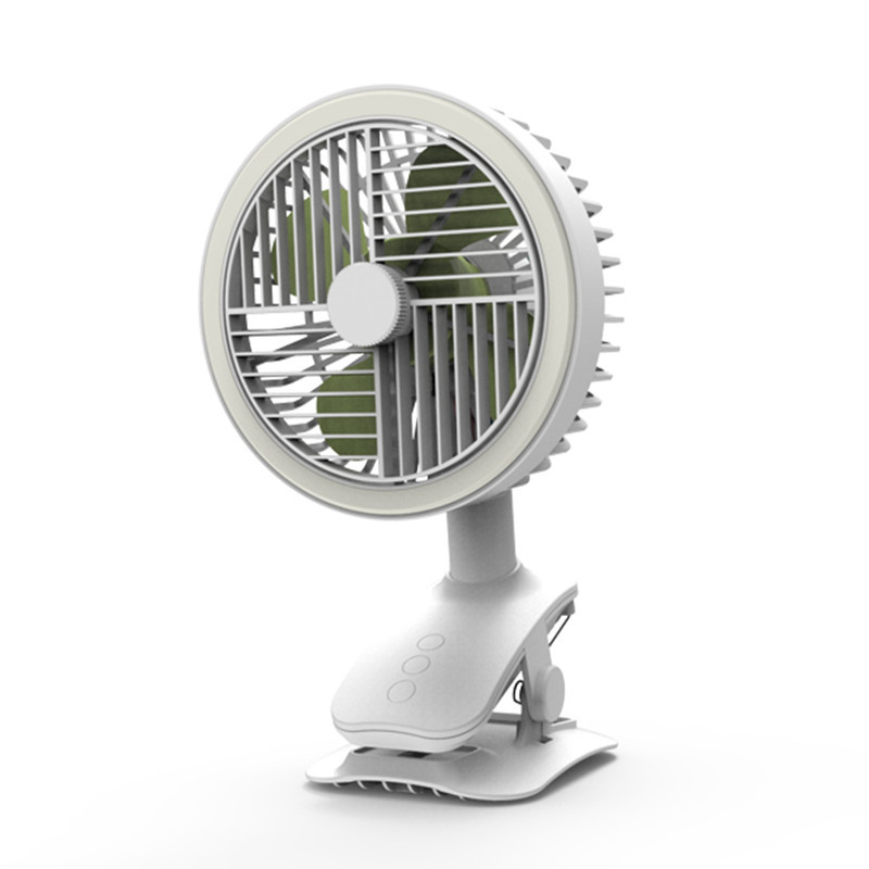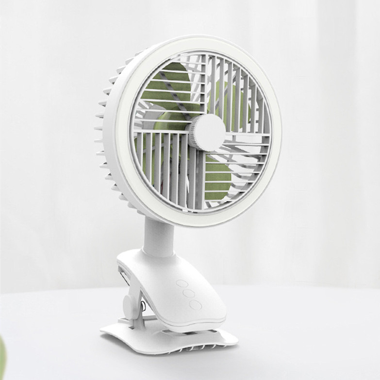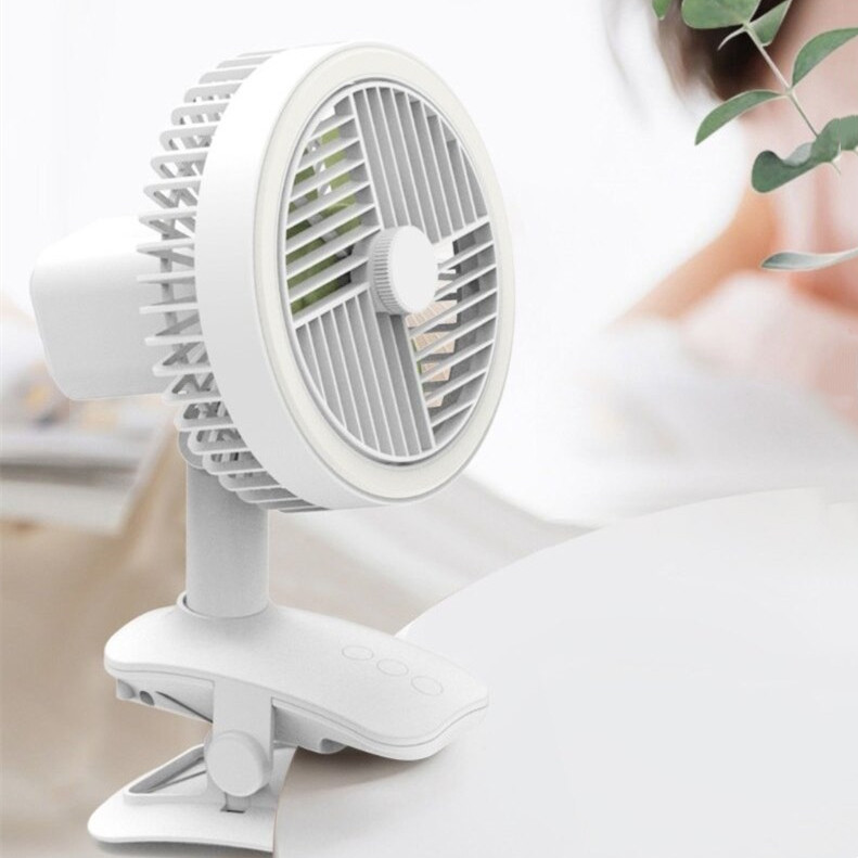 【可夾可立】【旋罩廣域自動搖頭】【立體循環自然風】【無刷電機超靜音】【LED環形燈】日式美型旗艦長續航USB台夾兩用循環風扇