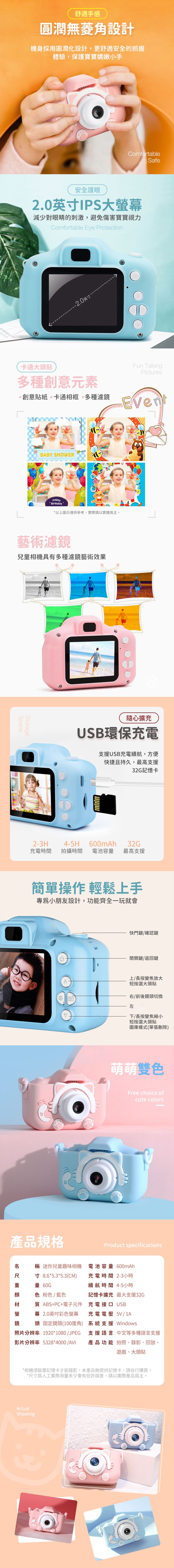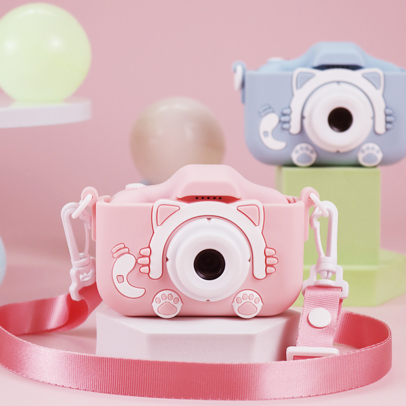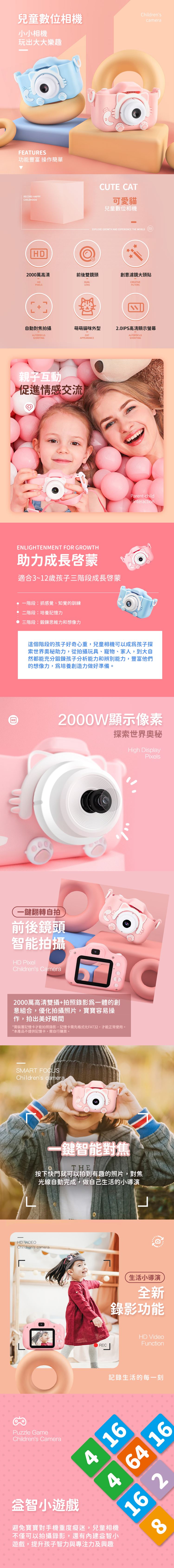 【2000萬像素高清】【送記憶卡】【前後雙鏡頭】【自動對焦】【支援錄影】【2.0IPS大屏】超萌貓貓造型矽膠軟殼高配版本兒童數位相機