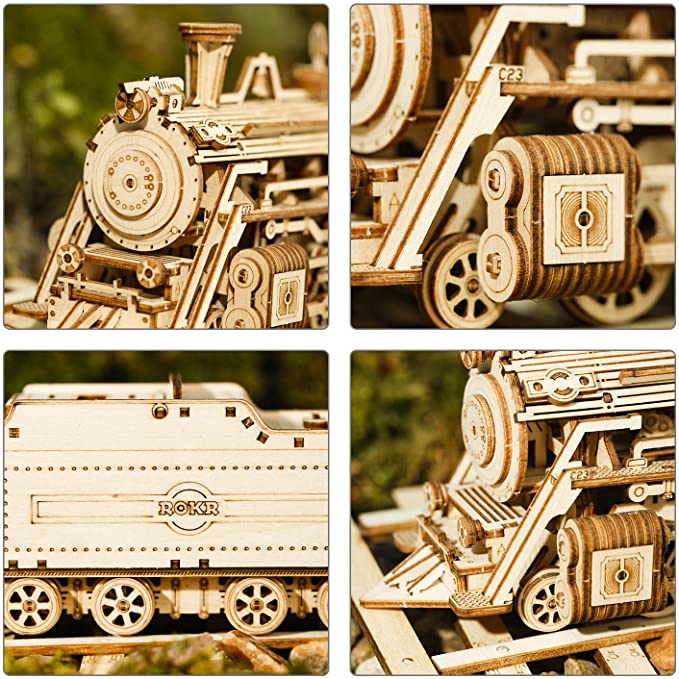 【1:80蒸汽機車DIY立體拼圖】【機械齒輪】【FSC認證環保原木】【海德堡高清印刷】高檔全手工高清全彩DIY蒸汽機車立體拼圖
