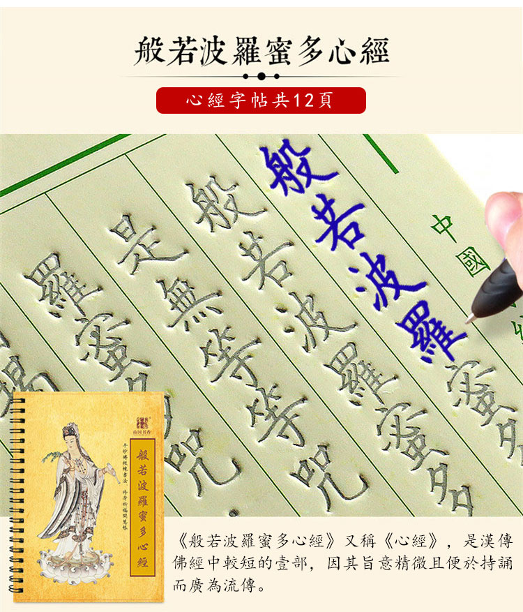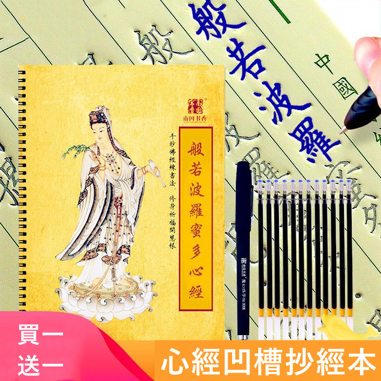 【買一送一】【心經字帖筆具筆芯套組】【立體凹槽】【反復書寫自動褪色】般若波羅蜜心經立體凹槽手抄本反復書寫筆具套組