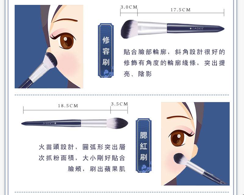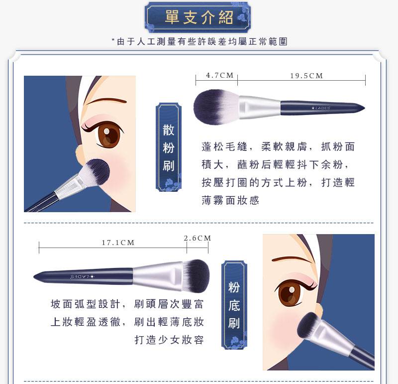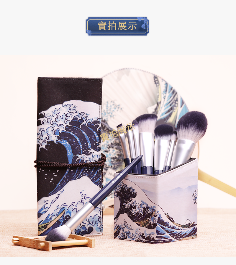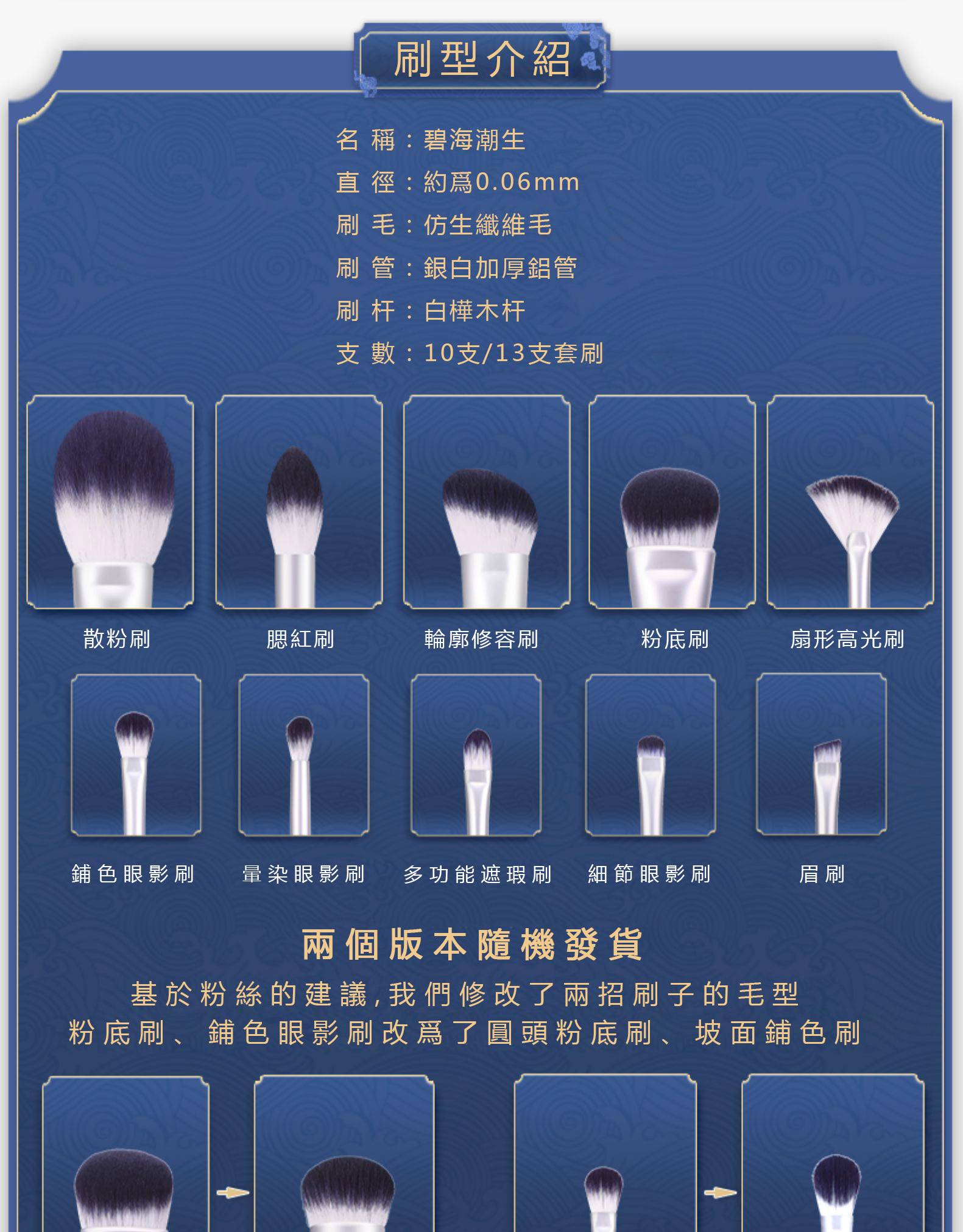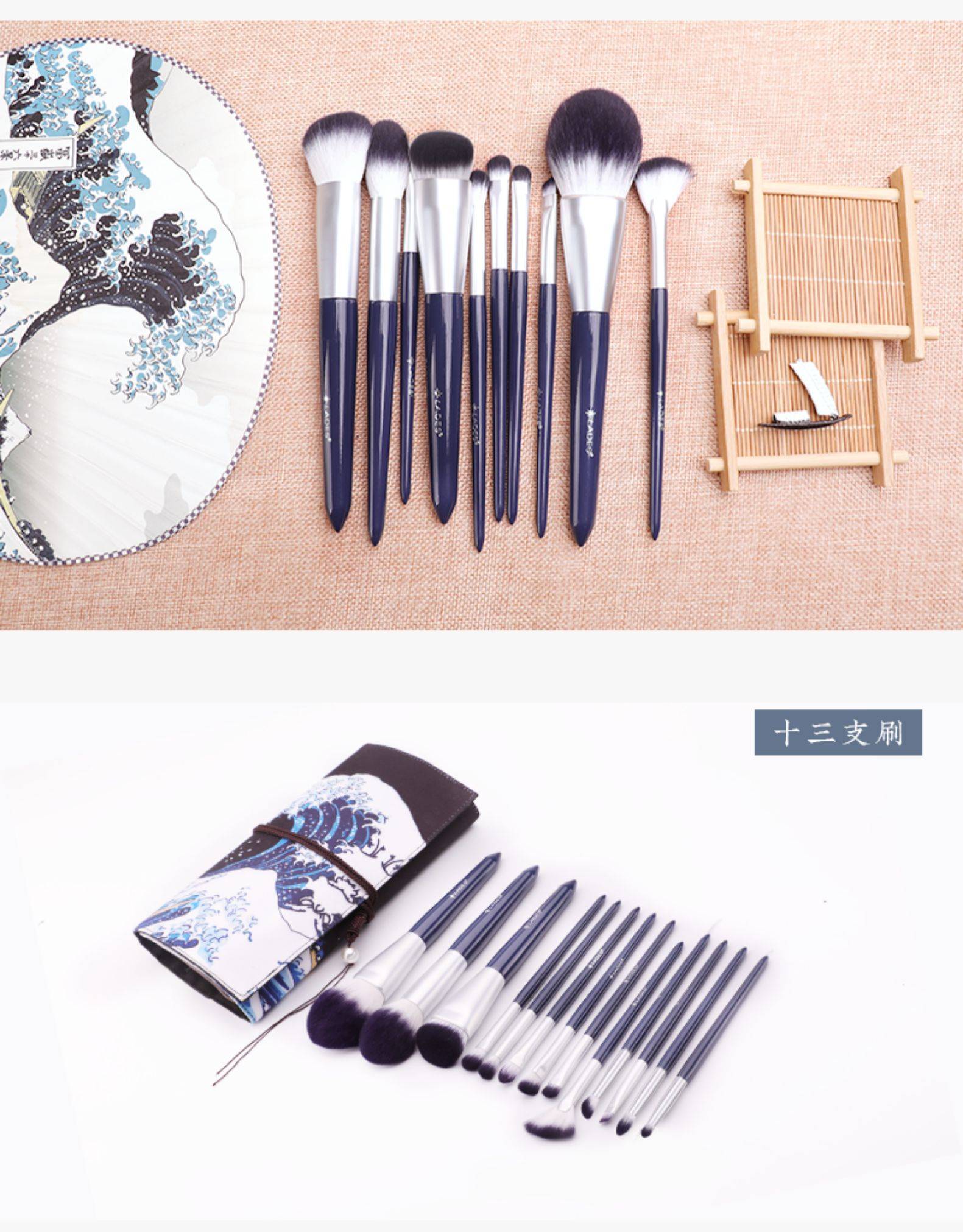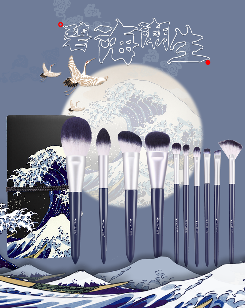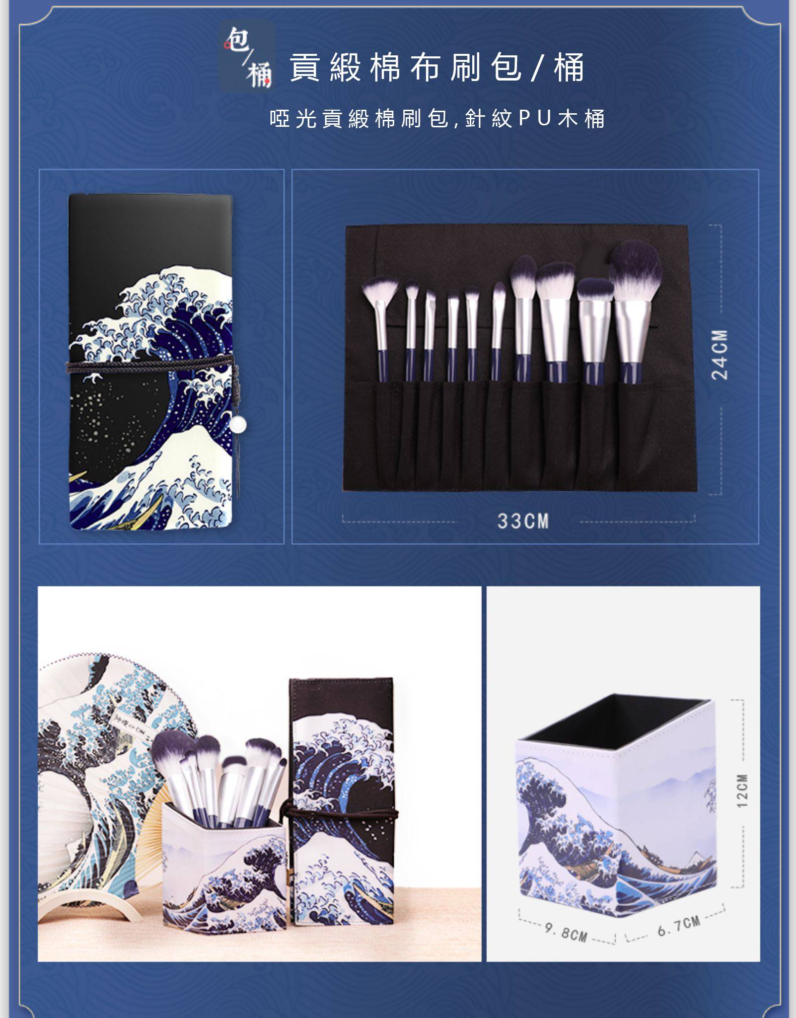 【碧海潮生全套刷具10件組】【送便攜刷具包】日式神奈川碧海潮生親膚柔軟仿生蜜粉眼影遮瑕粉底全套化妝刷具10件組