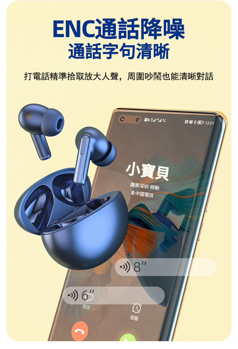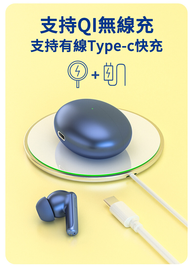 【高解析純金音質】【ANC+ENC雙重降噪】【支援QI無線充】【舒適穩固佩戴】純金音質高解析音頻編碼雙重降噪藍牙5.1真無線藍芽耳機