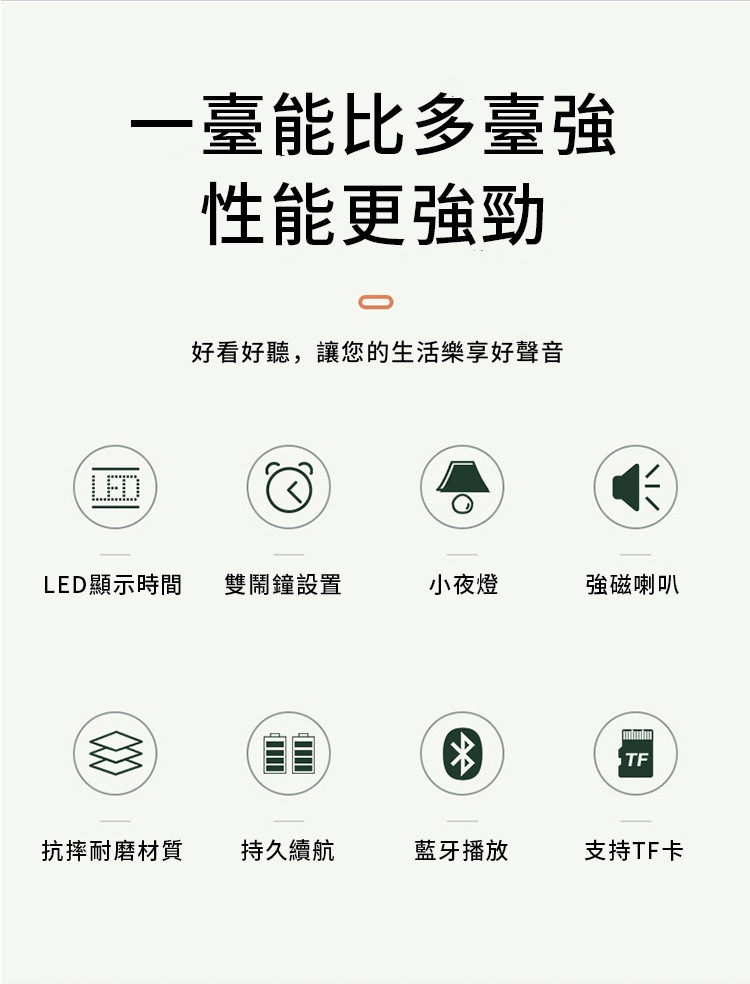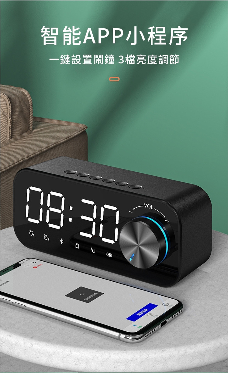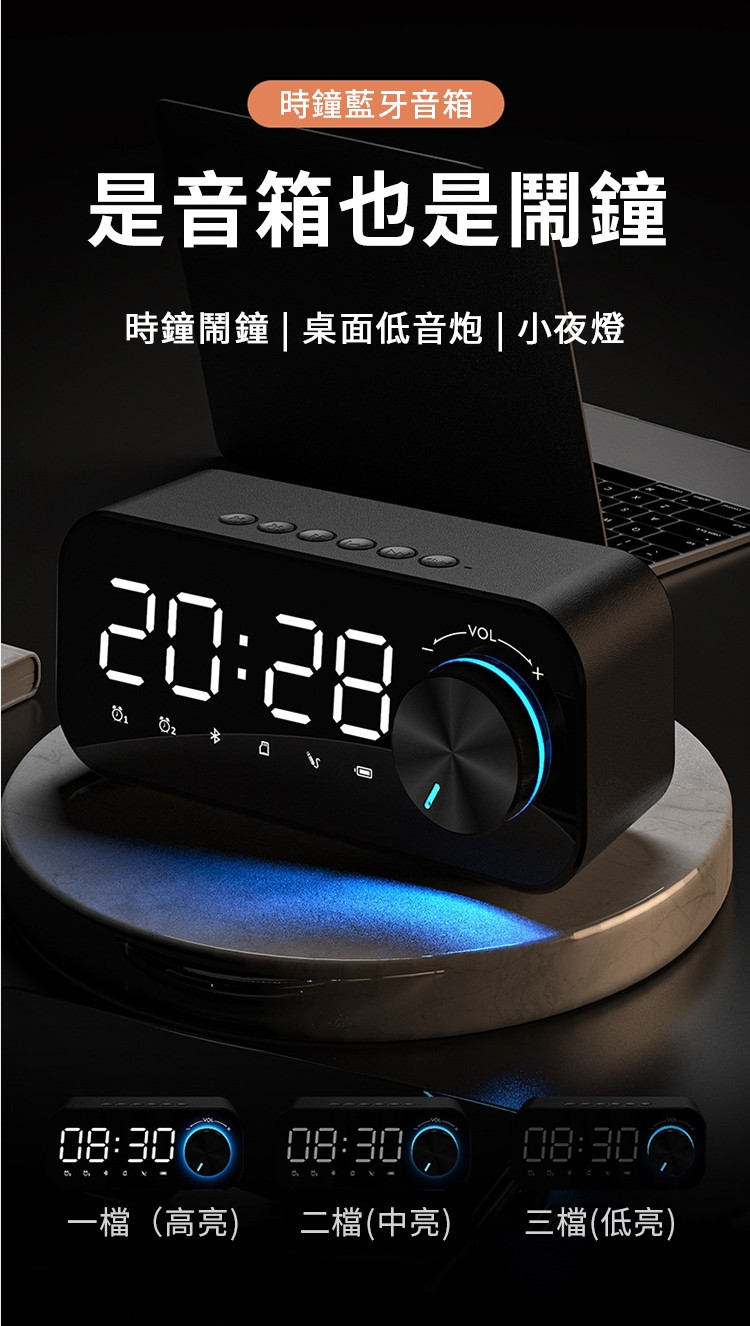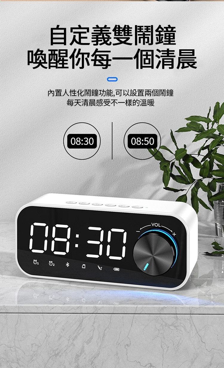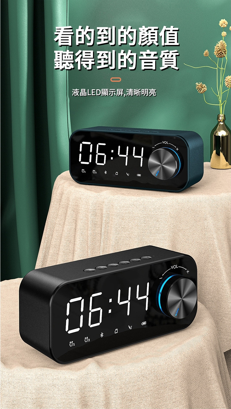 是藍牙喇叭也是鬧鐘 | 大振膜澎湃立體聲 | LED特大時間屏 | 藍牙5.0穩定連接 | 科幻感美型多功能LED雙鬧鐘無線藍牙音箱喇叭
