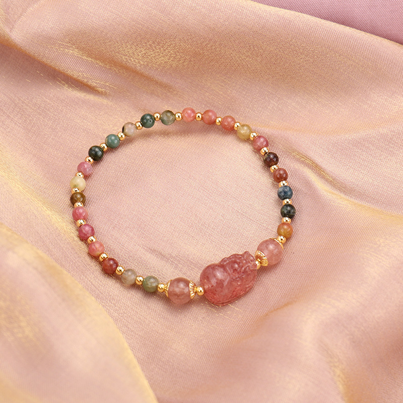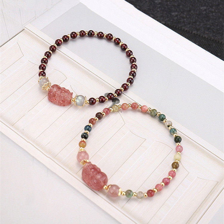 • 碧璽珠鍊配草莓晶貔貅